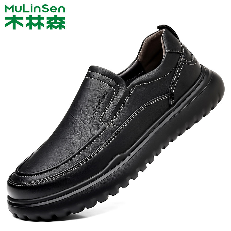 木林森男鞋秋冬休闲皮鞋男真皮男鞋宽松软底软面一脚蹬手工缝线鞋