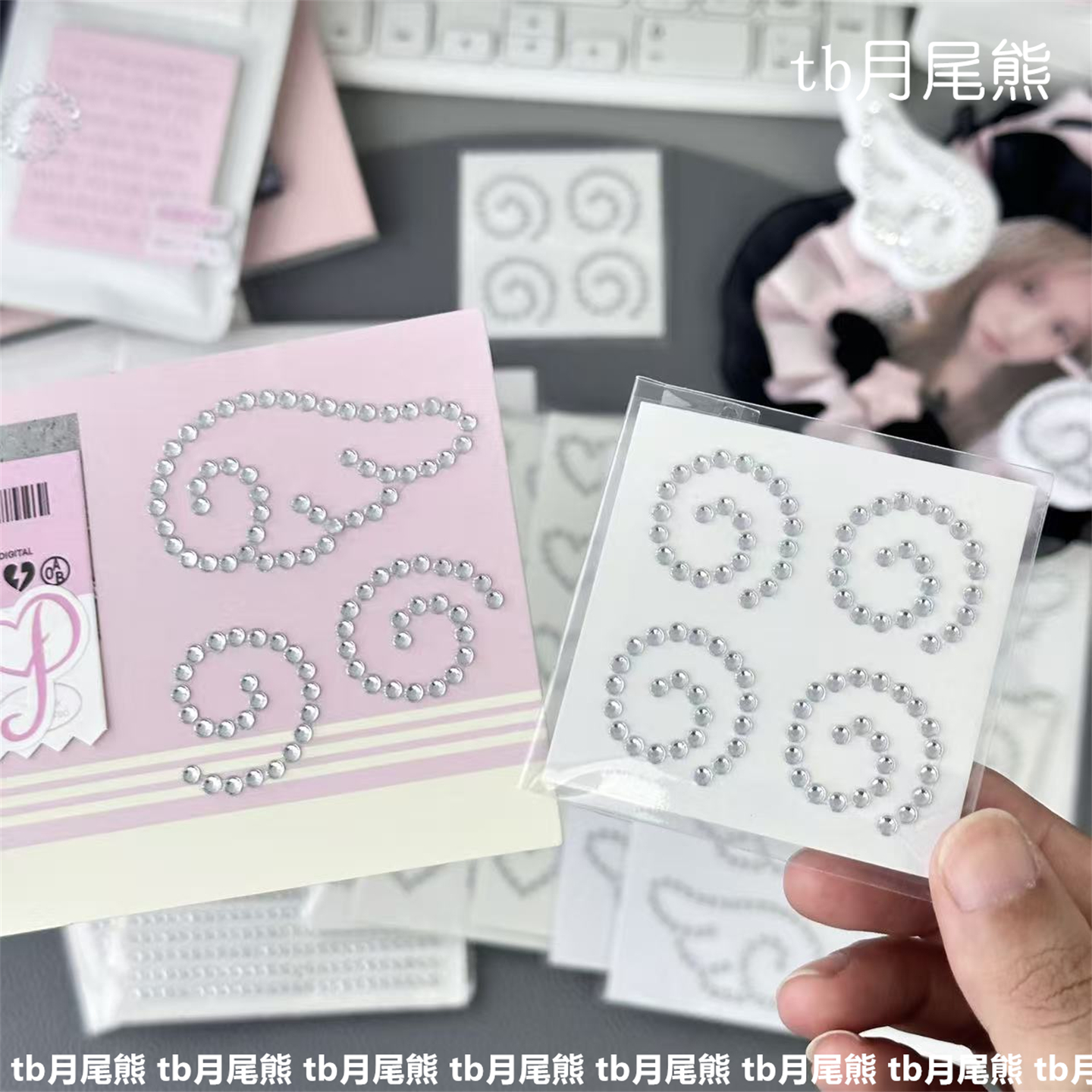 ins风高颜值小天使翅膀水钻贴可爱鱼板钻石贴出卡打包装饰小贴纸