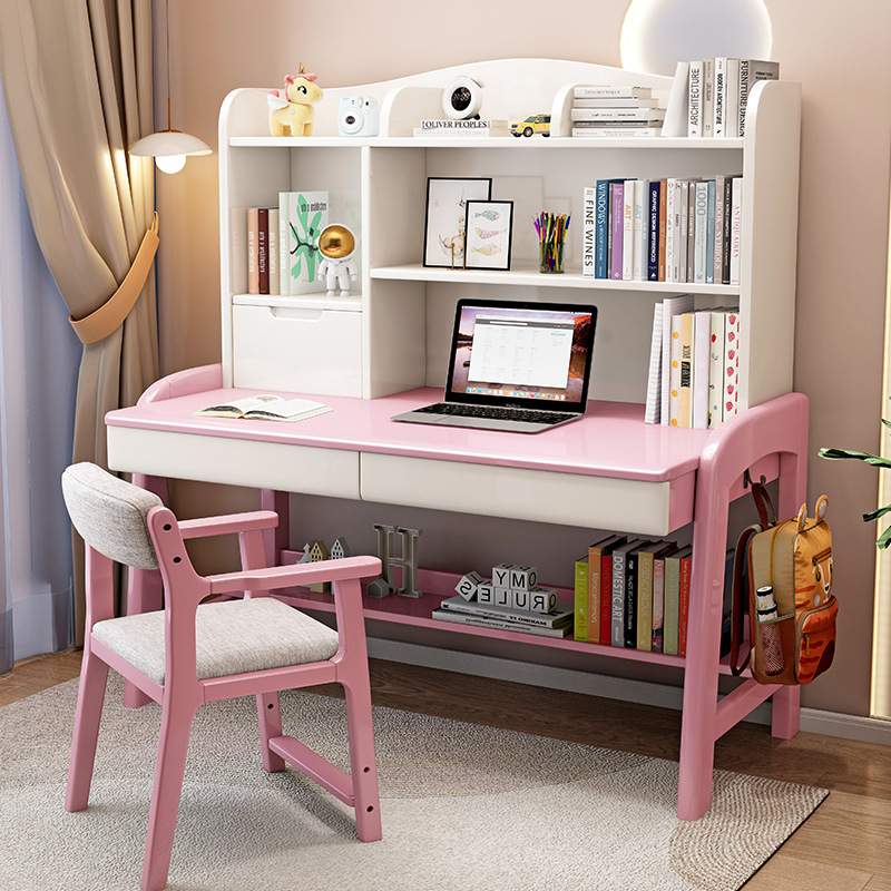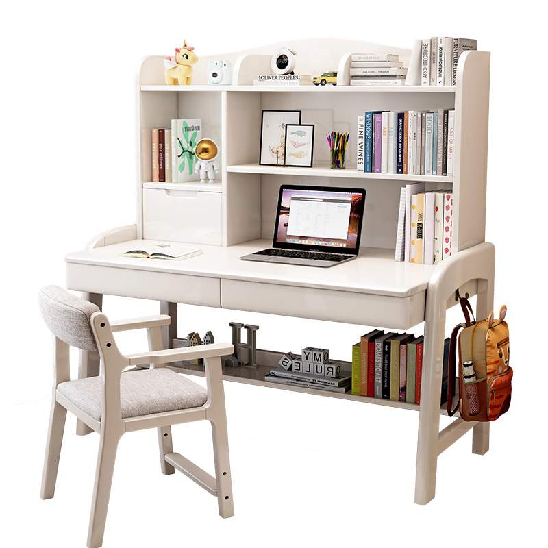 儿童学习桌实木书桌书架一体中小学生写字现代简约家用卧室课