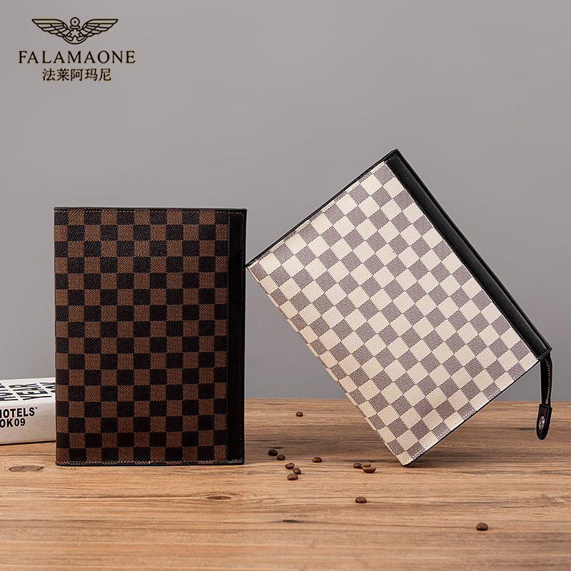 法莱阿玛尼轻奢格子男士手包休闲百轻奢夹包商务休闲腋下包包男包