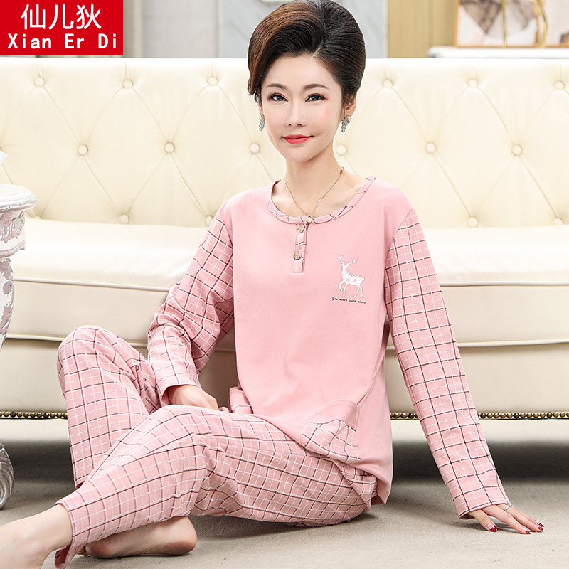 春秋季睡衣女长袖纯棉中老年老人妈妈中年人大码高级感家居服套装
