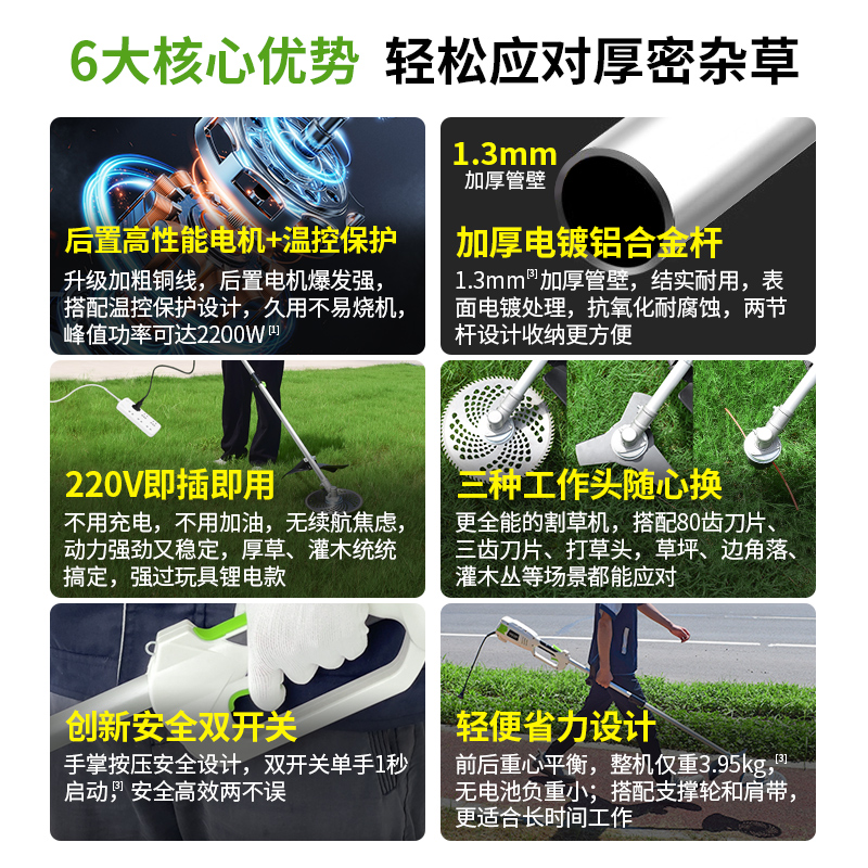 天朗2200W大功率家用插电割草机