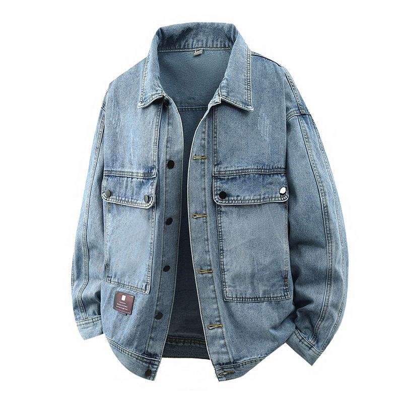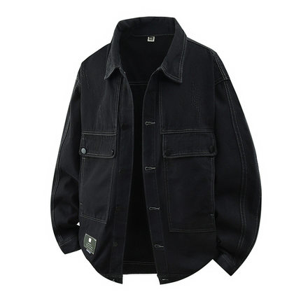 德国高端美式休闲牛仔外套男潮牌蓝色夹克简约百搭外穿翻领牛仔衣