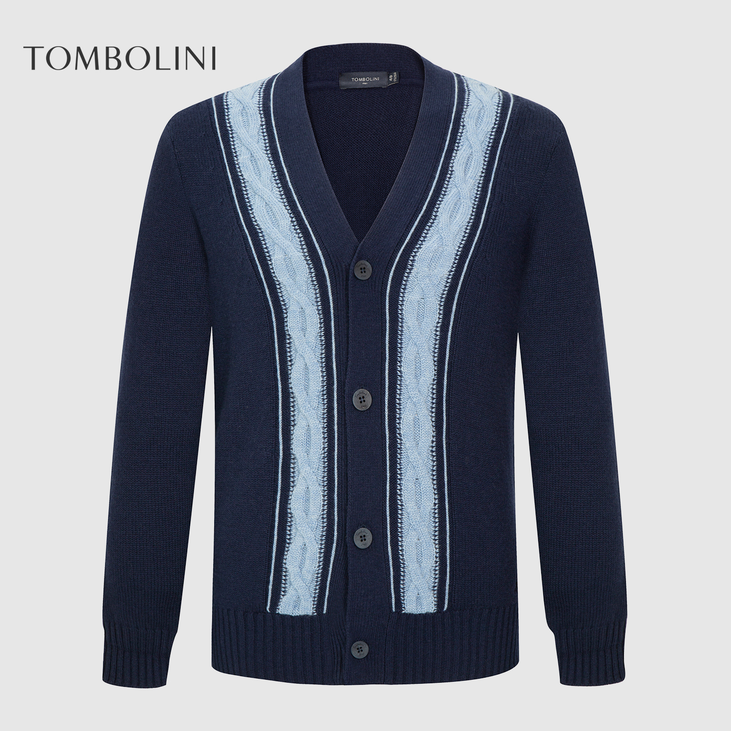 【100%羊毛开衫】东博利尼秋季新款撞色羊毛衫外套男士时尚开衫潮
