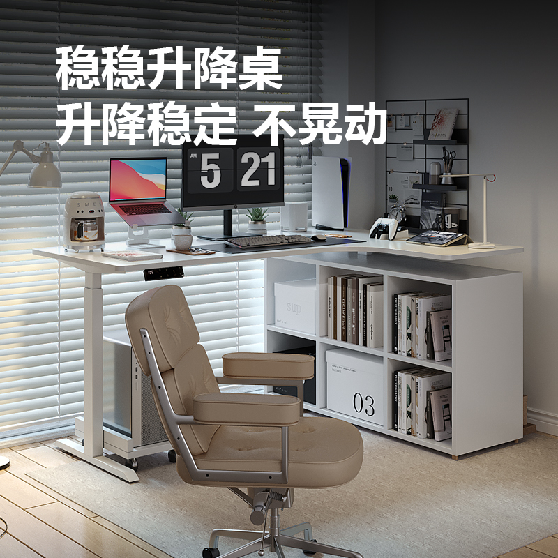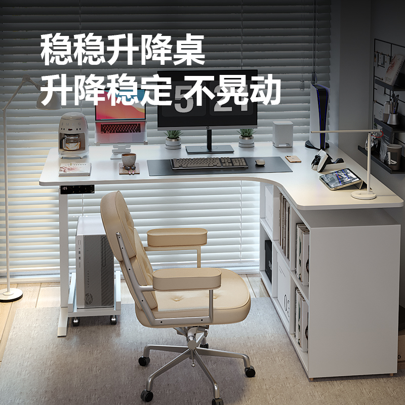 【wzo稳稳升降桌】实木转角书桌L型书柜一体电动电脑桌拐角办公桌