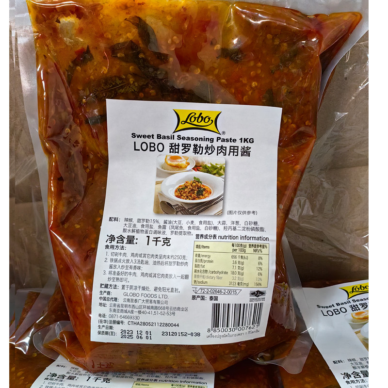 泰国泰式打抛猪肉饭酱料甜罗勒炒肉酱九层塔拌饭LOBO炒罗勒叶商用