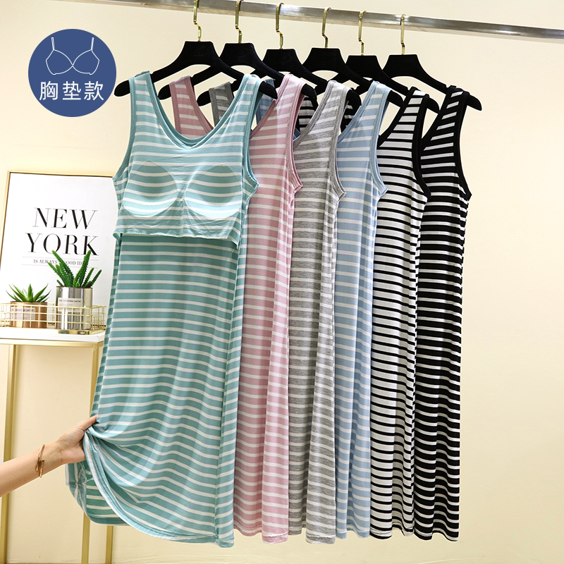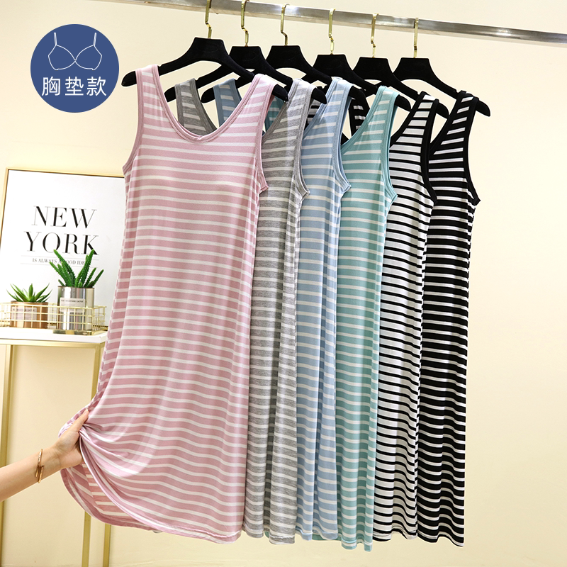 莫代尔背心睡裙女夏季薄款胸垫打底裙大码无袖家居裙可外穿休闲裙