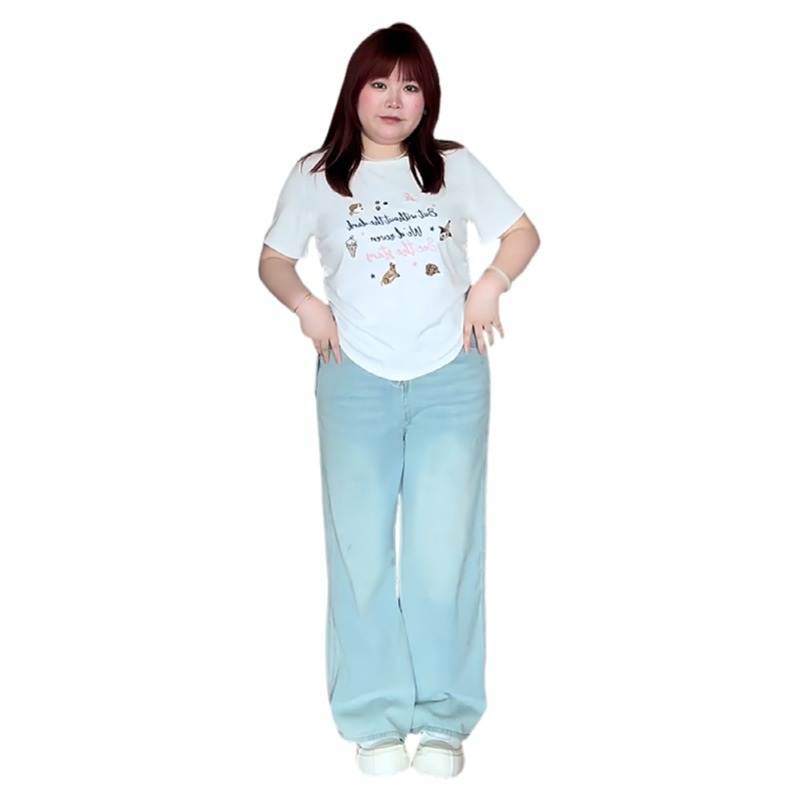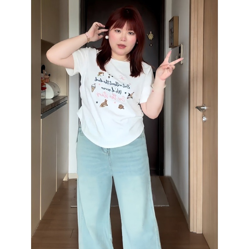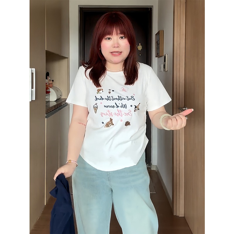 大码胖妹妹韩系印花白色短袖显瘦T恤女夏季新款修身遮肚子上衣ins