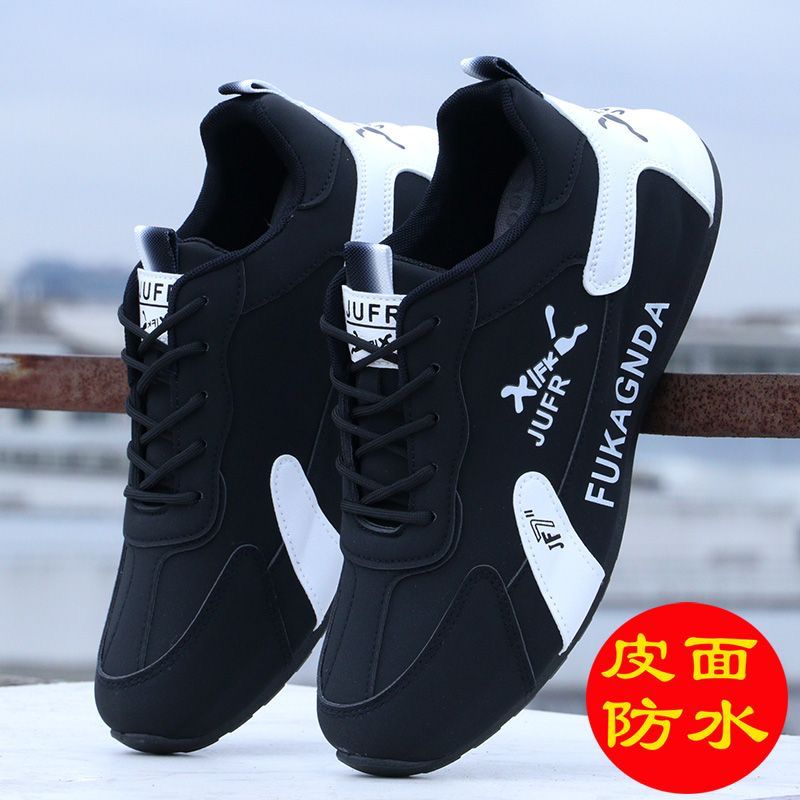 男鞋内增高2025新款春秋季皮面单鞋防水运动鞋软底百搭休闲包底鞋