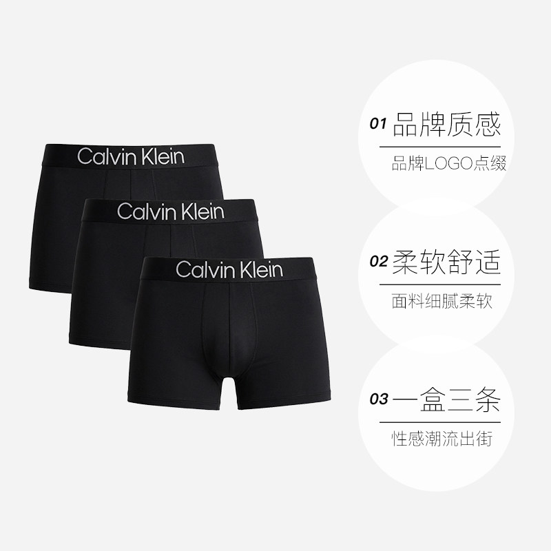 【自营】Calvin Klein/凯文克莱男士内裤平角透气四角三条礼盒装
