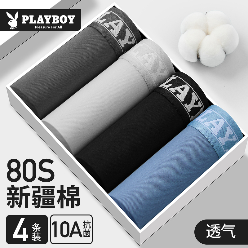 花花公子内裤男士纯棉新款平角裤男生四角短裤头抗菌透气大码裤衩