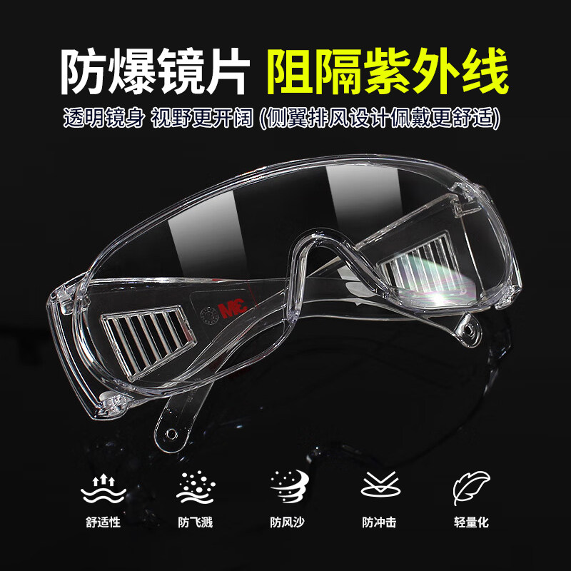 3M1611HC劳保工作防护眼镜防刮擦防飞沫飞溅骑行透明平光防护眼镜