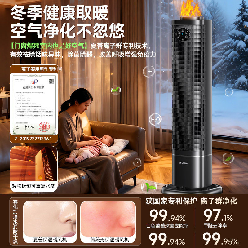 夏普全面屏暖风机取暖器净化加湿电暖气2025新智能客厅浴室热风机
