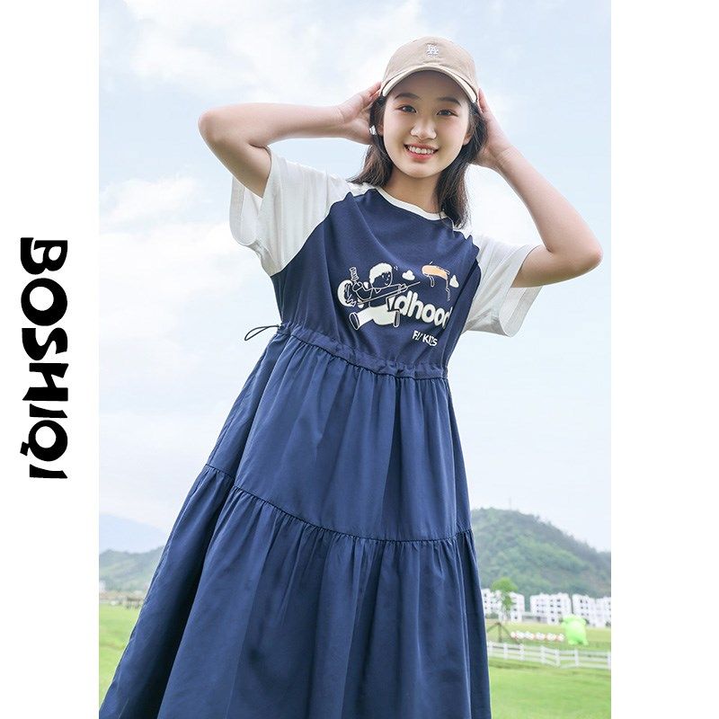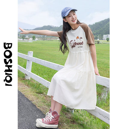 初中生连衣裙白色少女孩大童新款夏季2024高中生中长裙子学生过膝