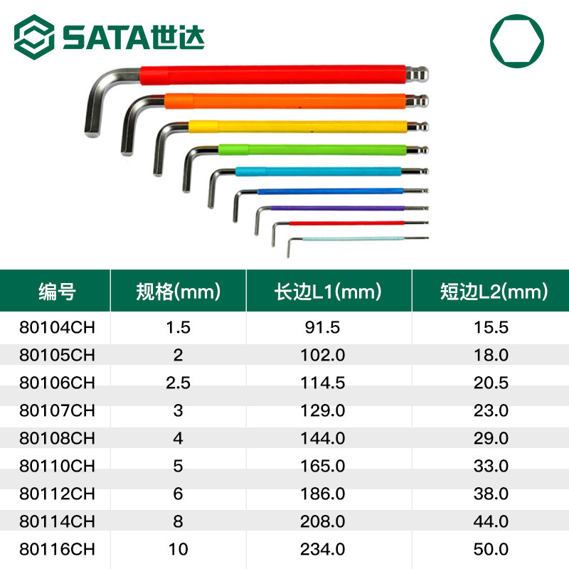 世达彩虹内六角扳手套装