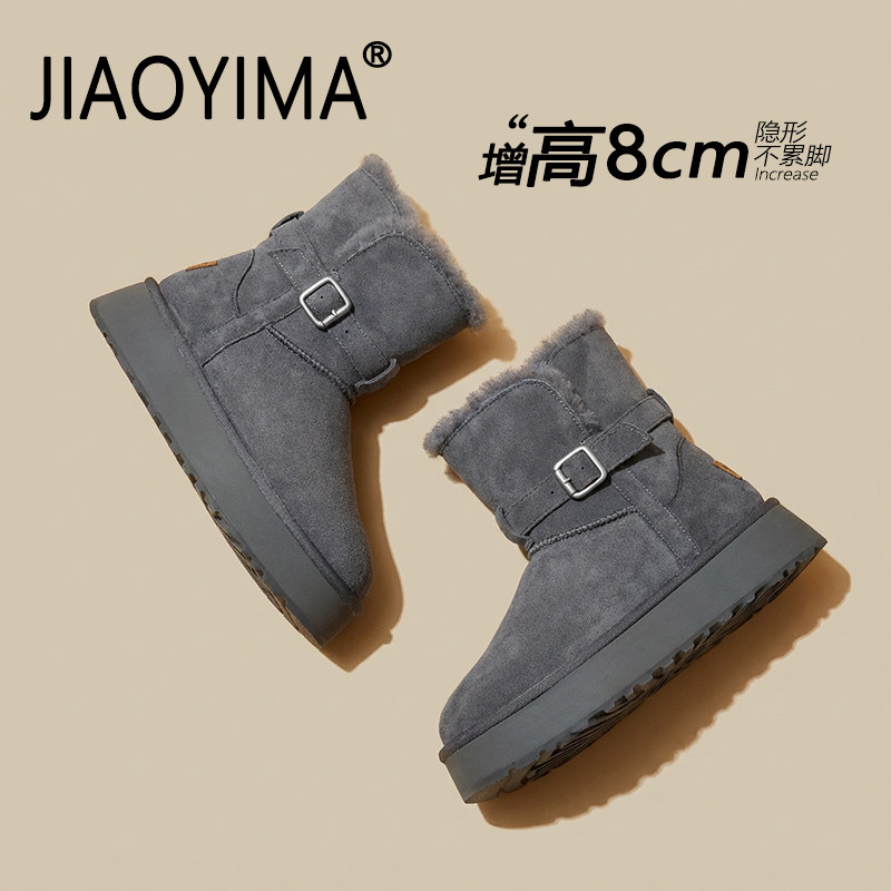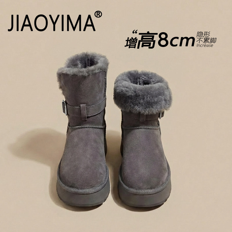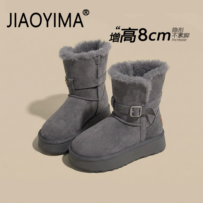 加厚保暖灰色厚底雪地靴女款2025冬季新款加绒内增高东北雪地棉鞋