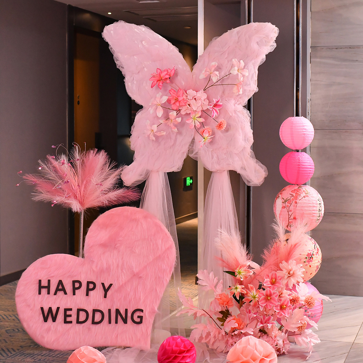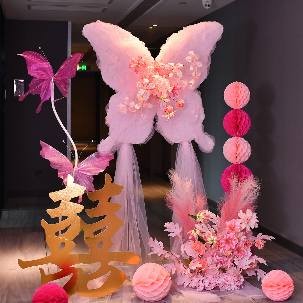 浪漫梦幻婚礼仿真花蝴蝶装饰结婚纱幔KT蝴蝶婚房布置求婚场景