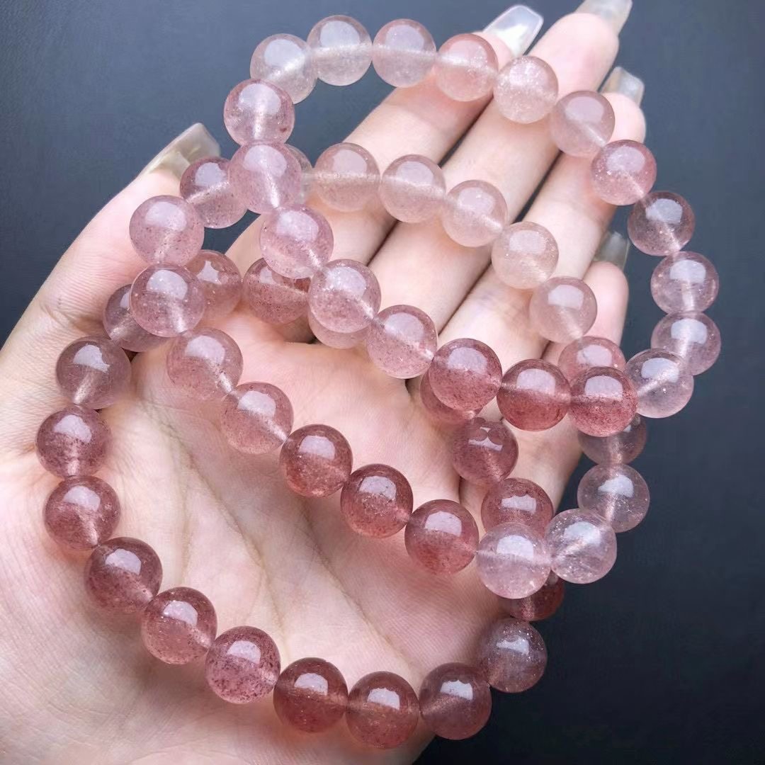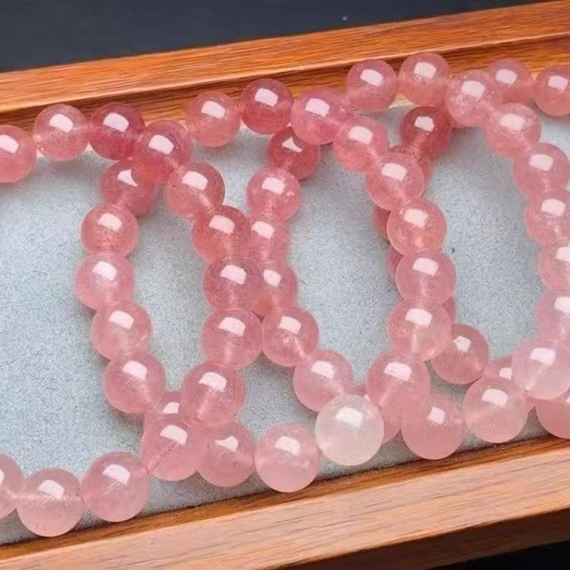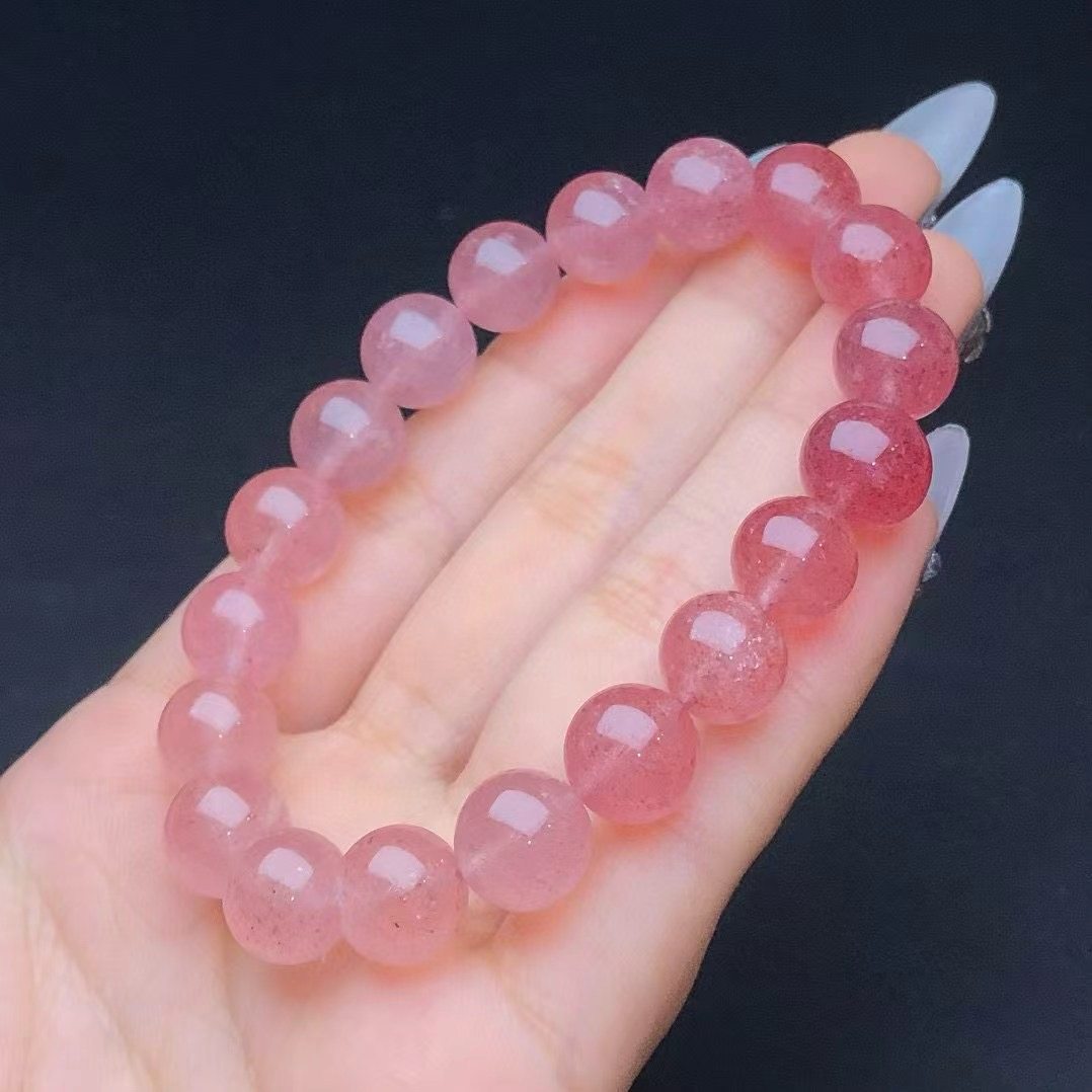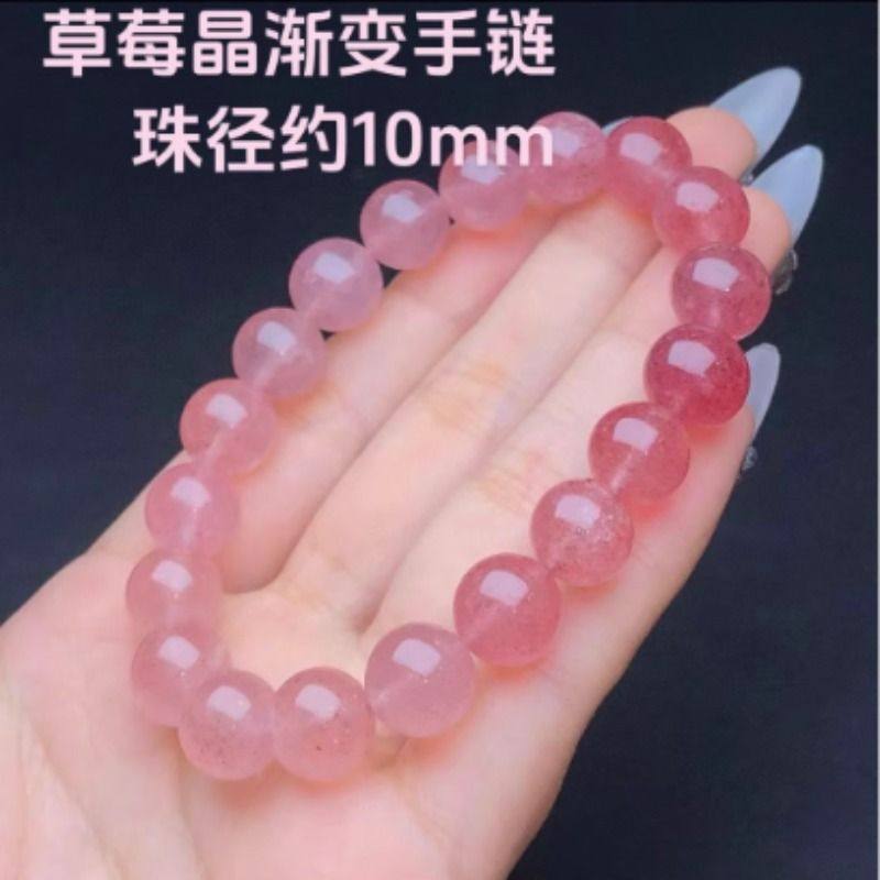 VZZS渐变草莓晶手链女粉色天然水晶粉水晶粉晶手串精致轻奢礼物