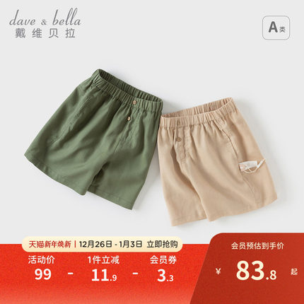 戴维贝拉儿童裤子2025夏季新款男童薄款休闲裤亚麻五分裤宝宝童装