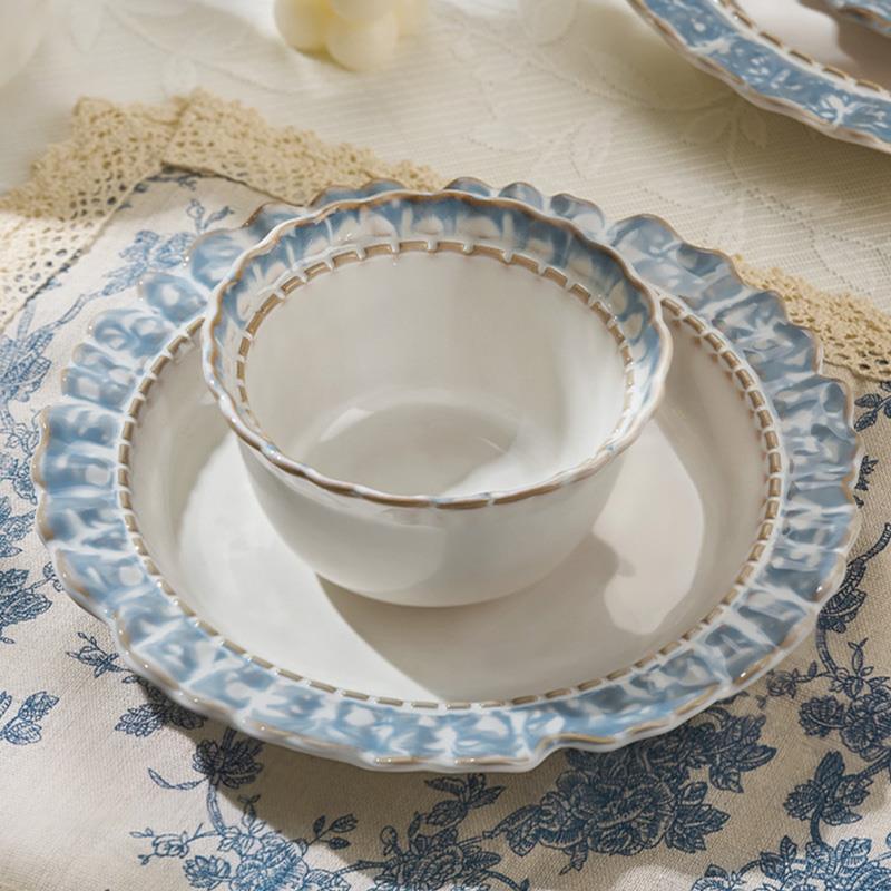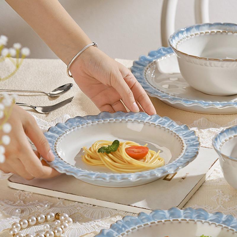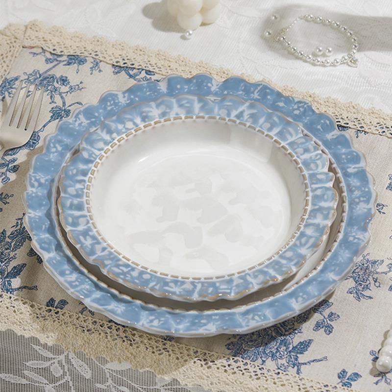 墨色烟蓝陶瓷餐具碗碟套装家用2025新款米饭碗高级感轻奢汤碗盘子