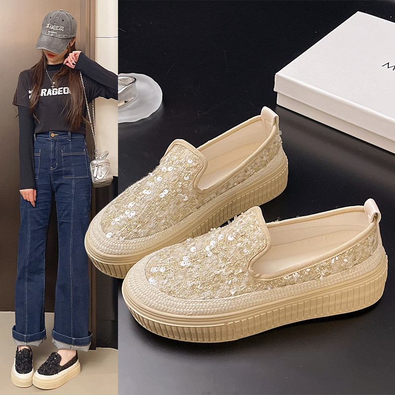 小香风渔夫鞋女2025新款一脚蹬厚底乐福鞋春夏软底单鞋时尚帆布鞋