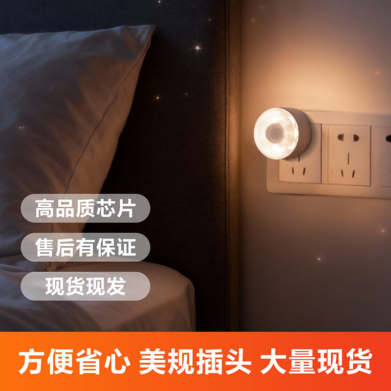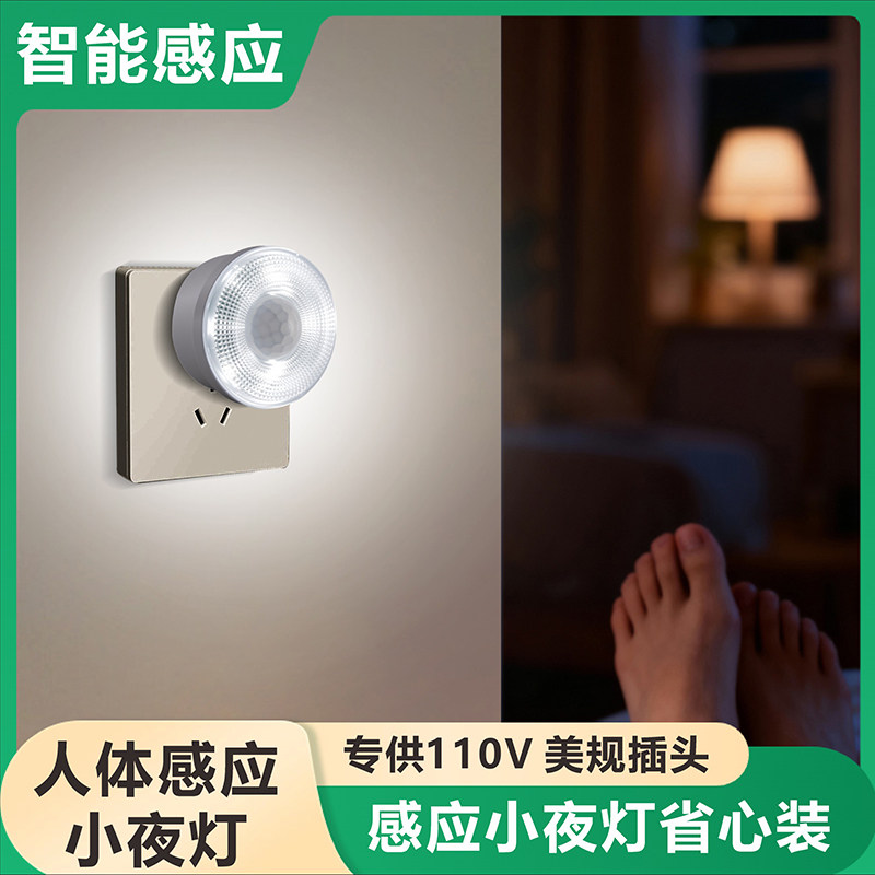 人体感应LED小夜灯美规插电使用卧室床头玄关楼梯过道起夜节能灯