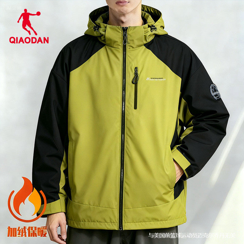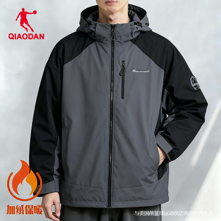 乔丹冲锋衣男男装2025新款冬季加绒保暖男士外套防风防水运动夹克
