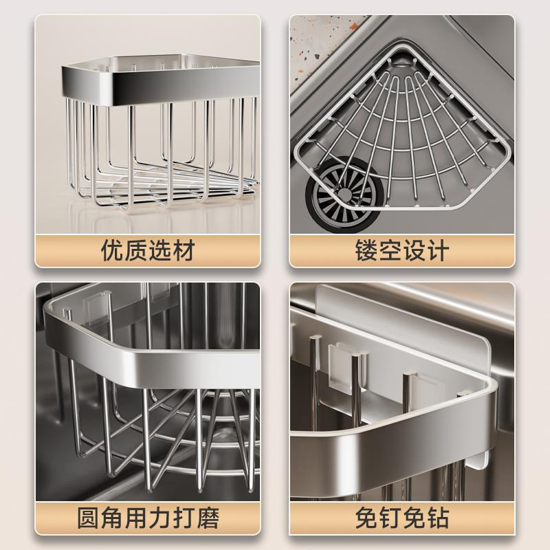 不锈钢厨房水槽转角海绵收纳篮浴室免钉置物架三角形免打孔沥水架