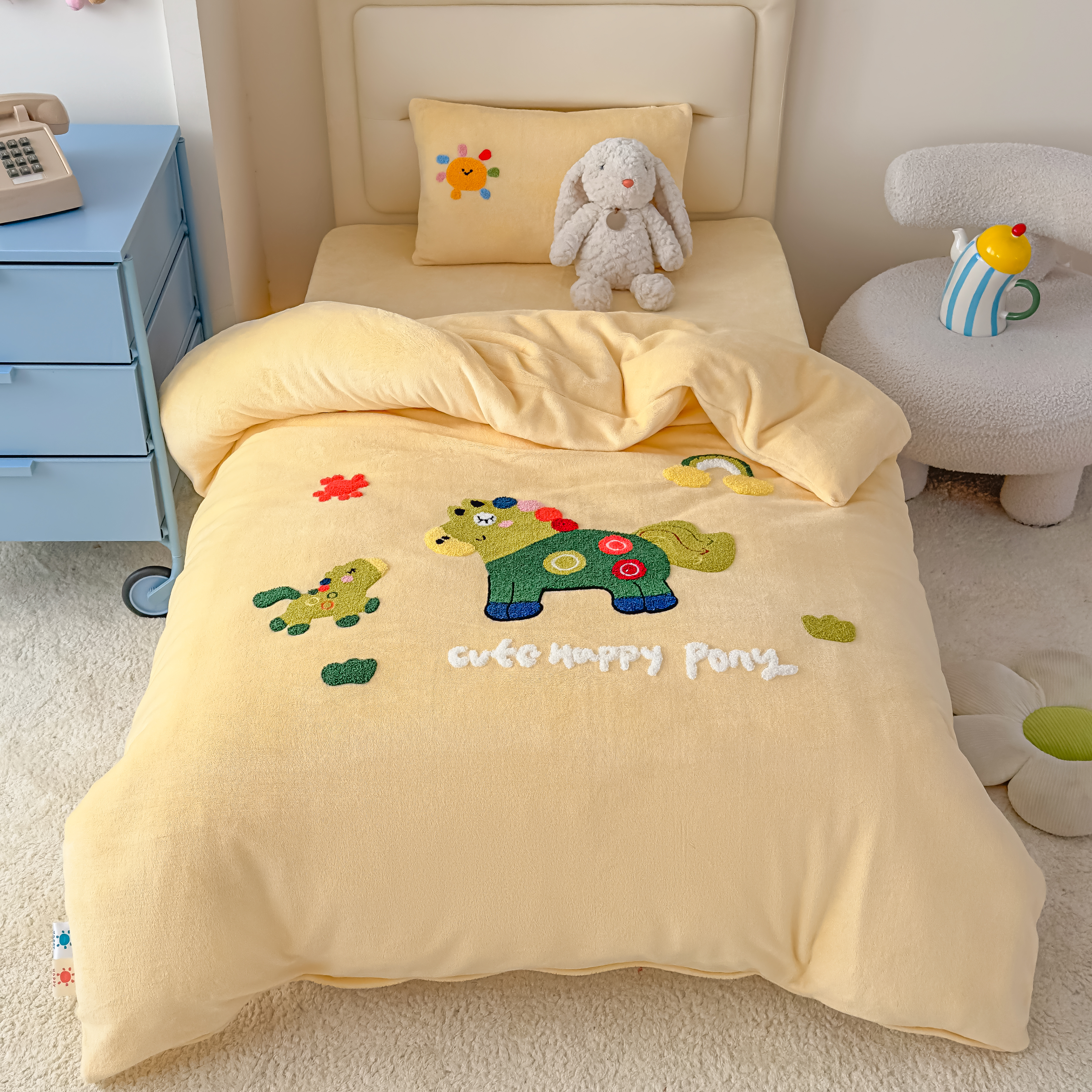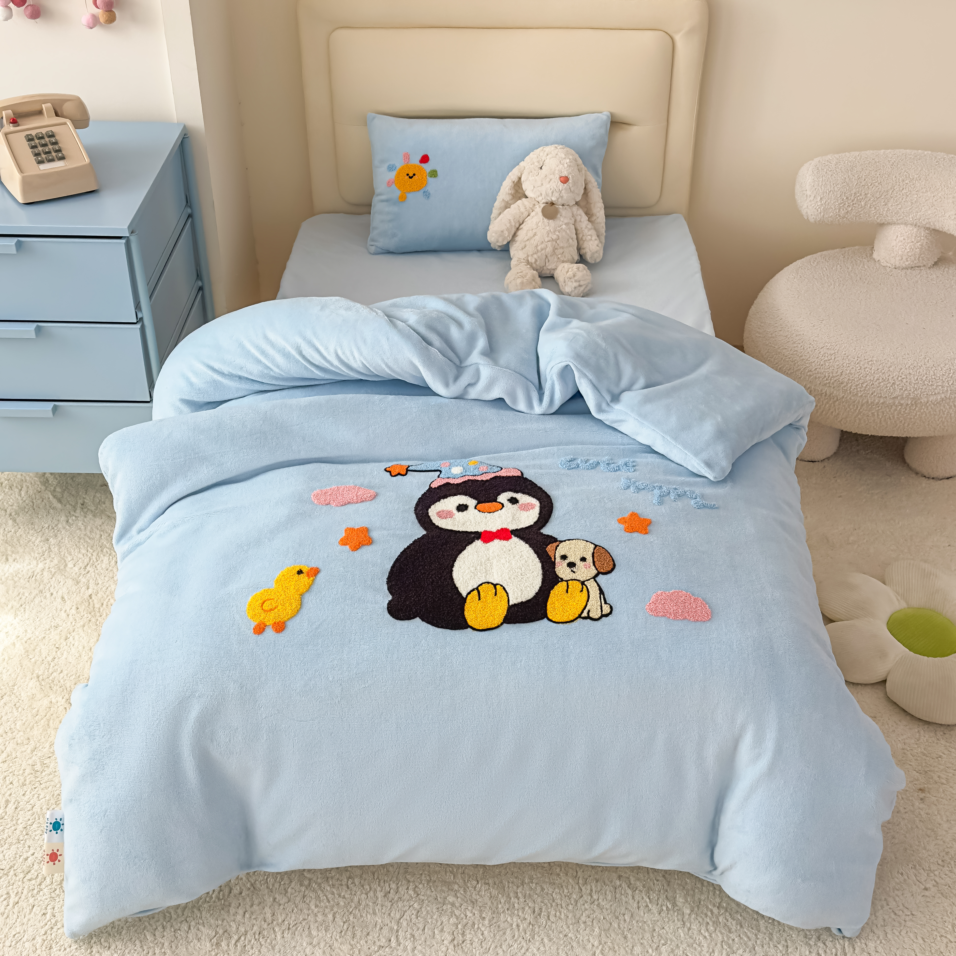 幼儿园被子三件套牛奶绒a类被褥入园床品午睡儿童专用小被子加厚