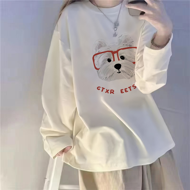 薄款长袖t恤女初中生2025新款打底衫大码胖mm遮肚子白色内搭上衣