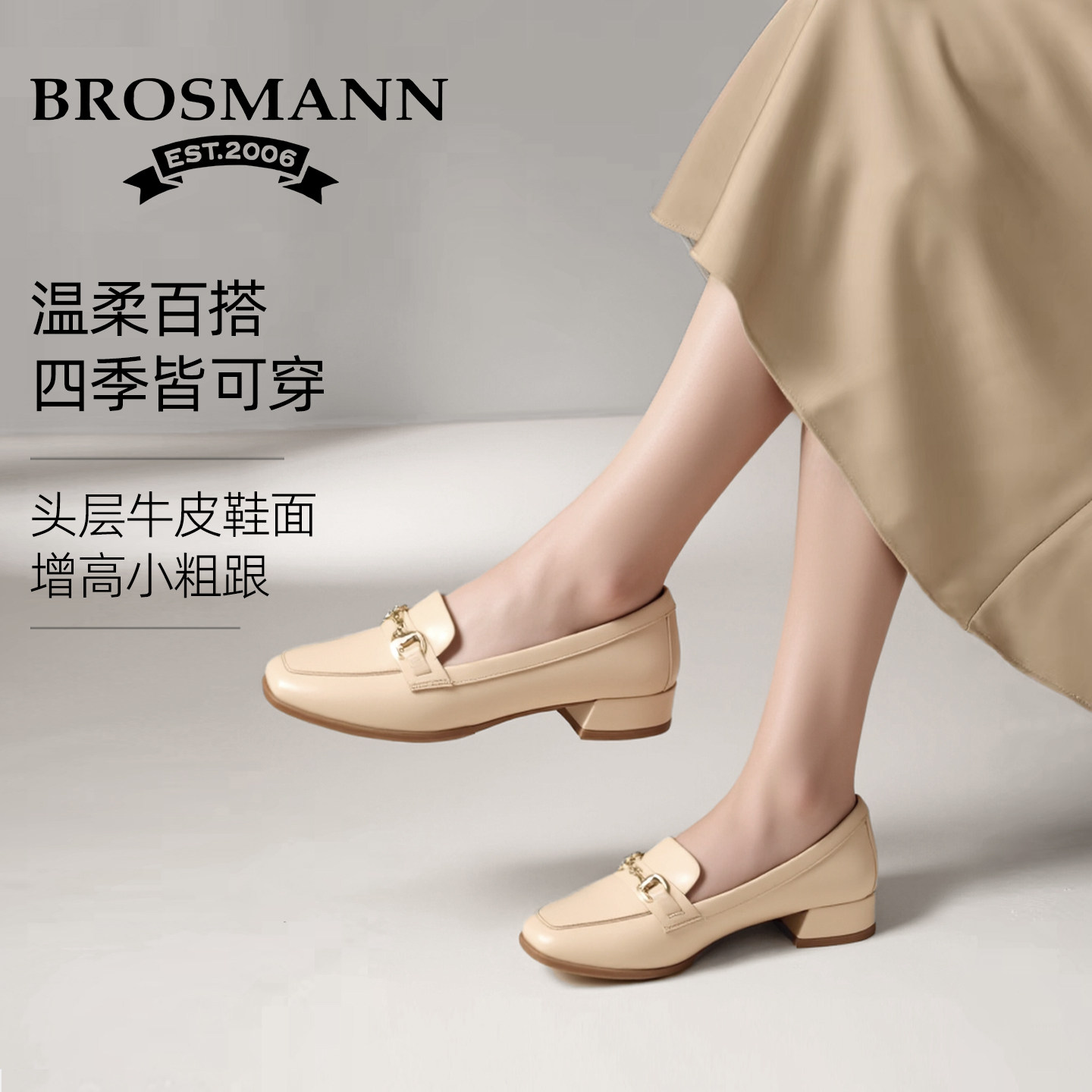 宝舒曼乐福鞋女款2025新款休闲中跟女鞋软底透气通勤粗跟女单鞋子