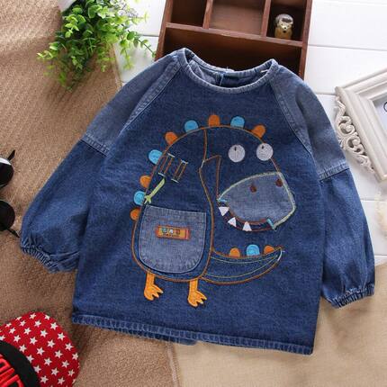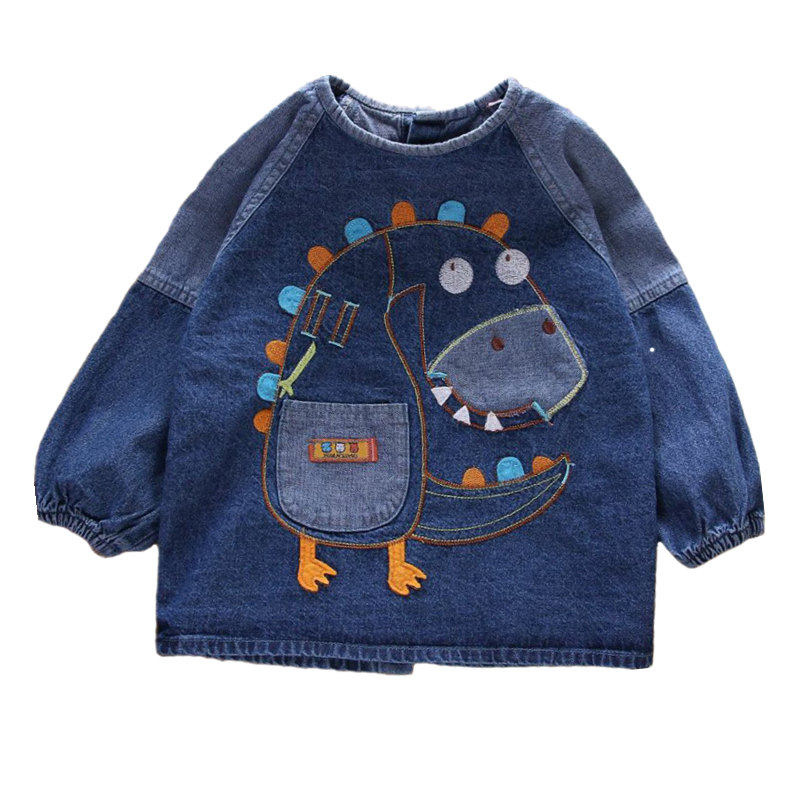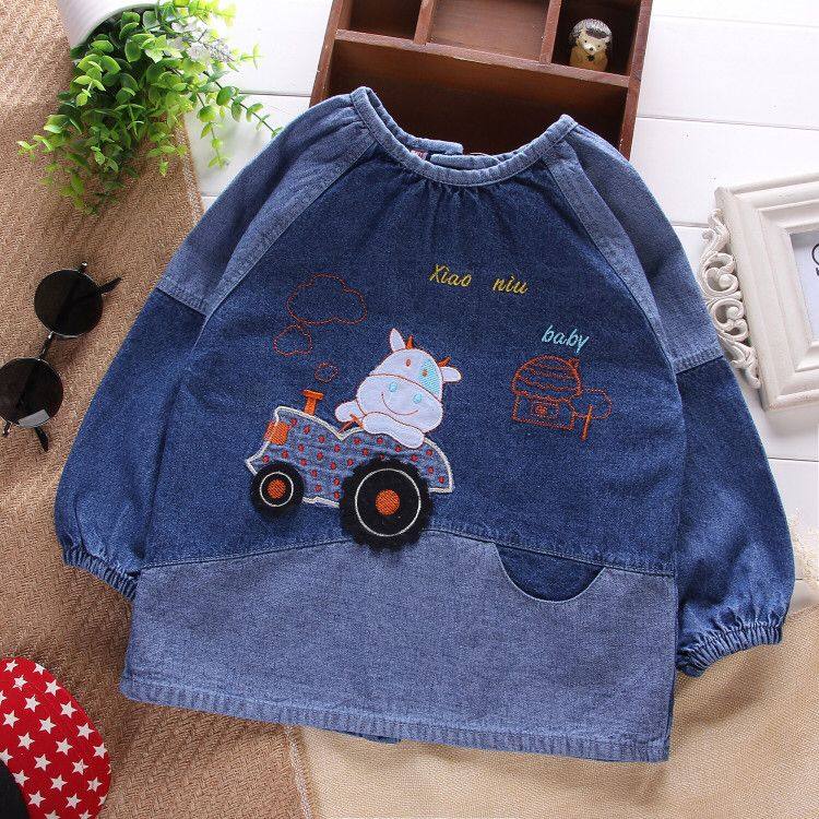 宝宝罩衣牛仔婴儿防水吃饭衣秋冬小孩反穿衣儿童男女纯棉围兜长袖