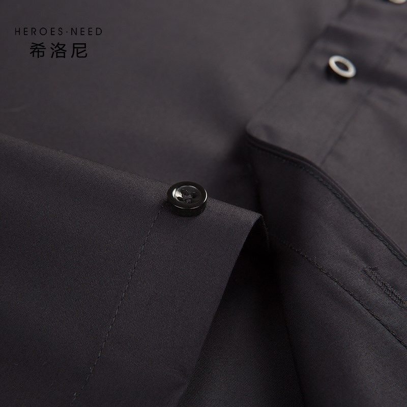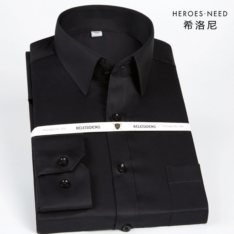 HN高级感黑色丝光棉纯棉免烫衬衫男士长袖高端正装高档西装寸衬衣