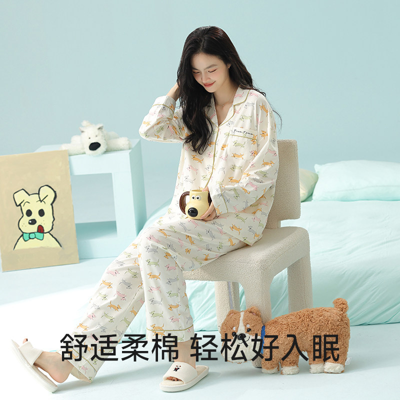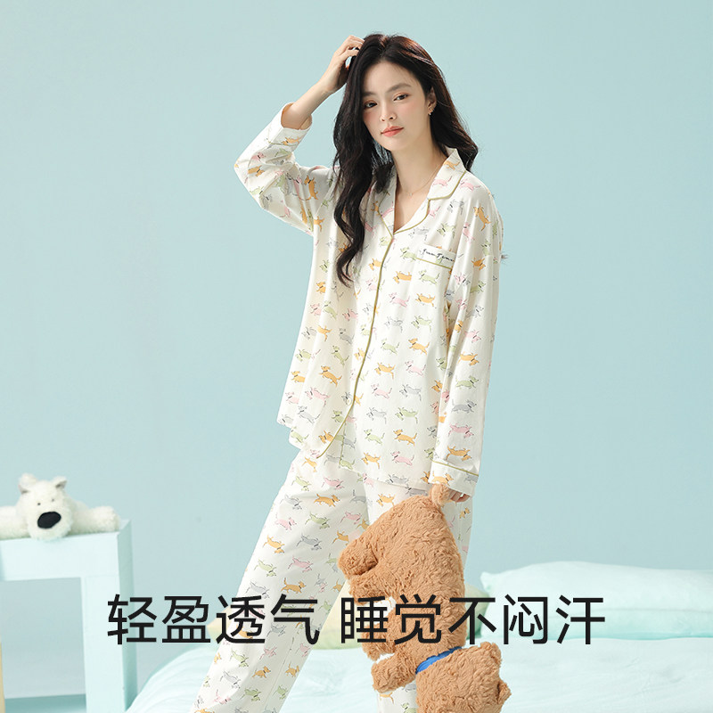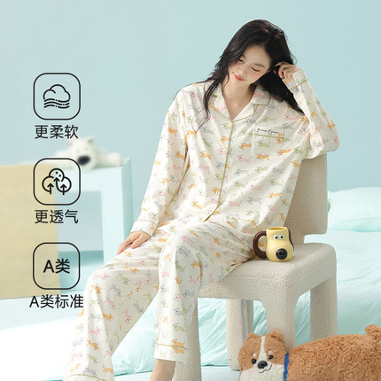 思馨坊纯棉睡衣女春秋长袖A类抑菌可外穿柔软开衫宽松家居服套装