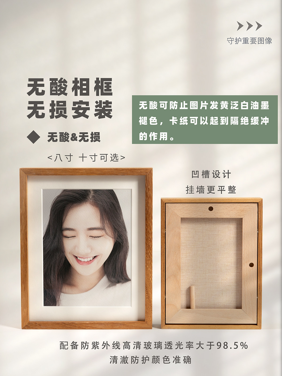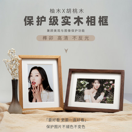 胡桃木柚木高端摆台削减反光保护高清图片框结婚照相框签名保护框