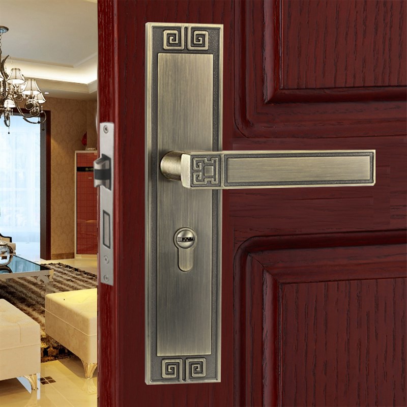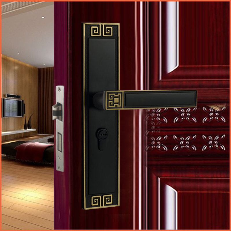 永佳福锌合金木门锁具卧室房间门静音磁吸锁黄古中式门锁家用套装
