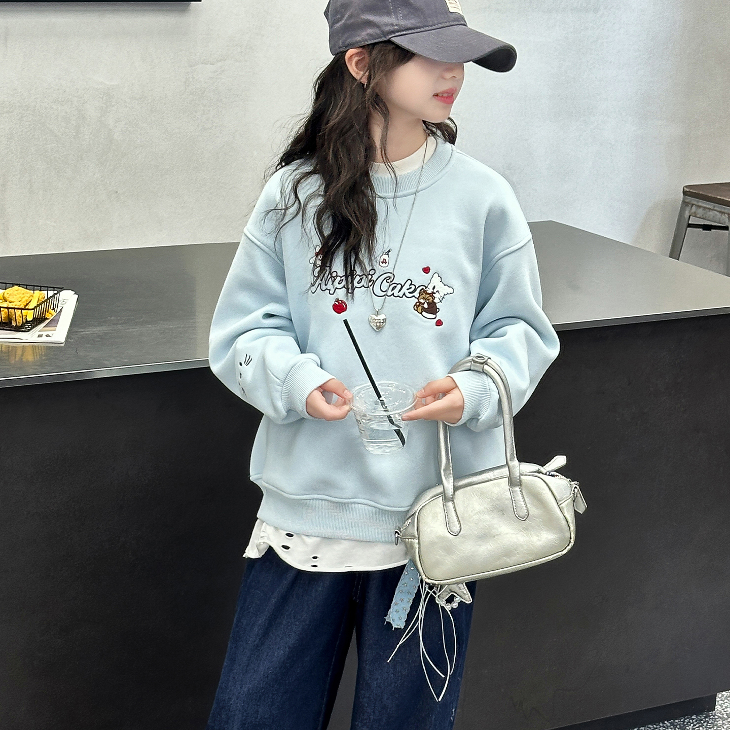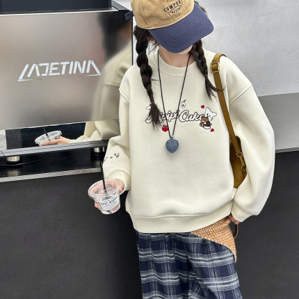 女童加绒加厚卫衣冬季一体绒上衣