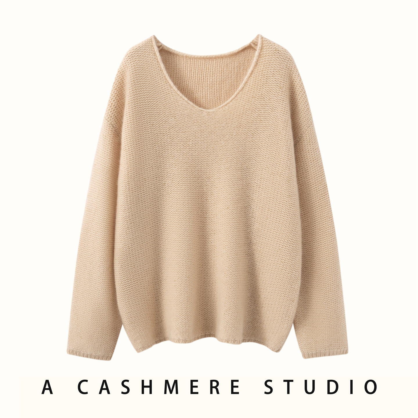 2025新款V领山羊绒衫女宽松慵懒风针织毛衣打底衫女软糯套头毛衣