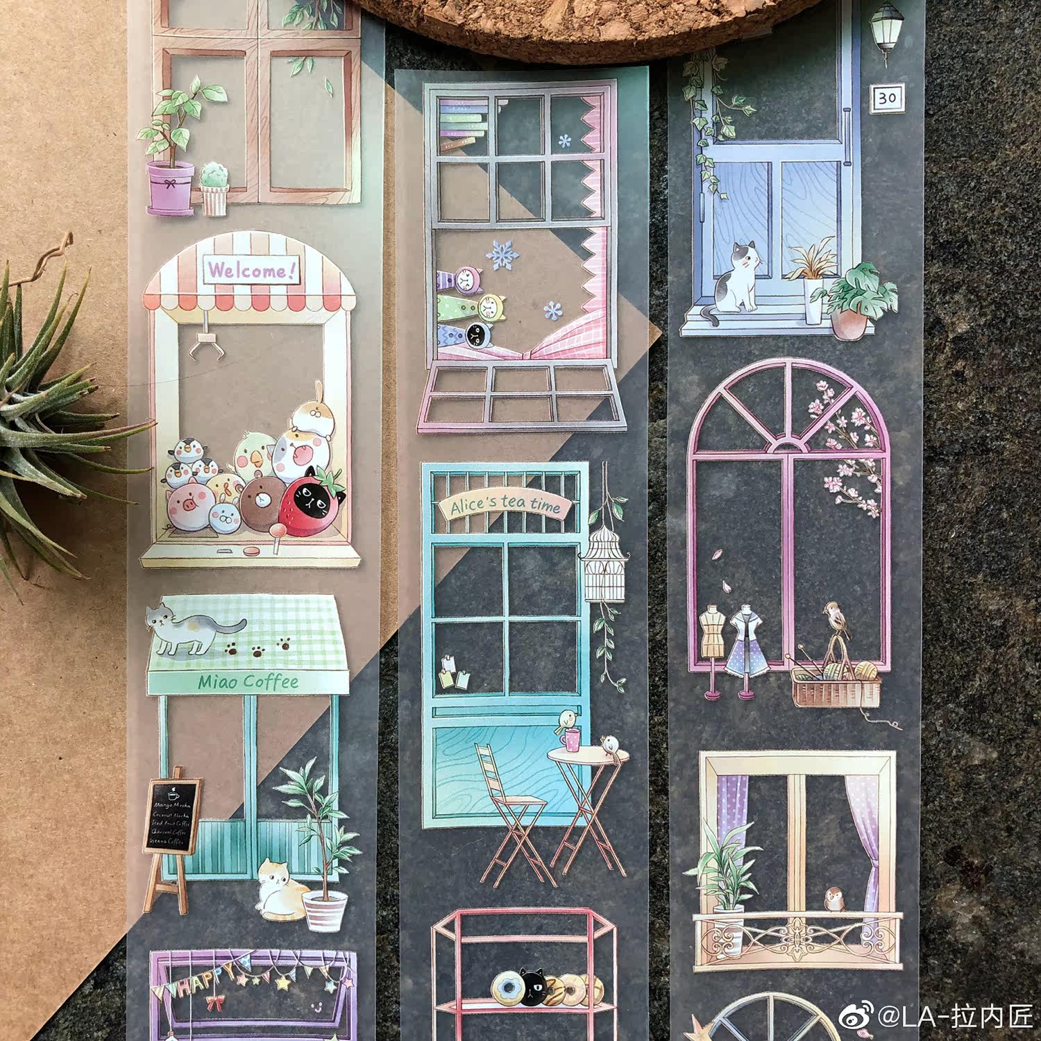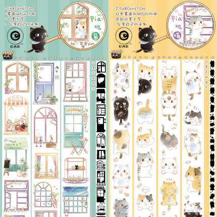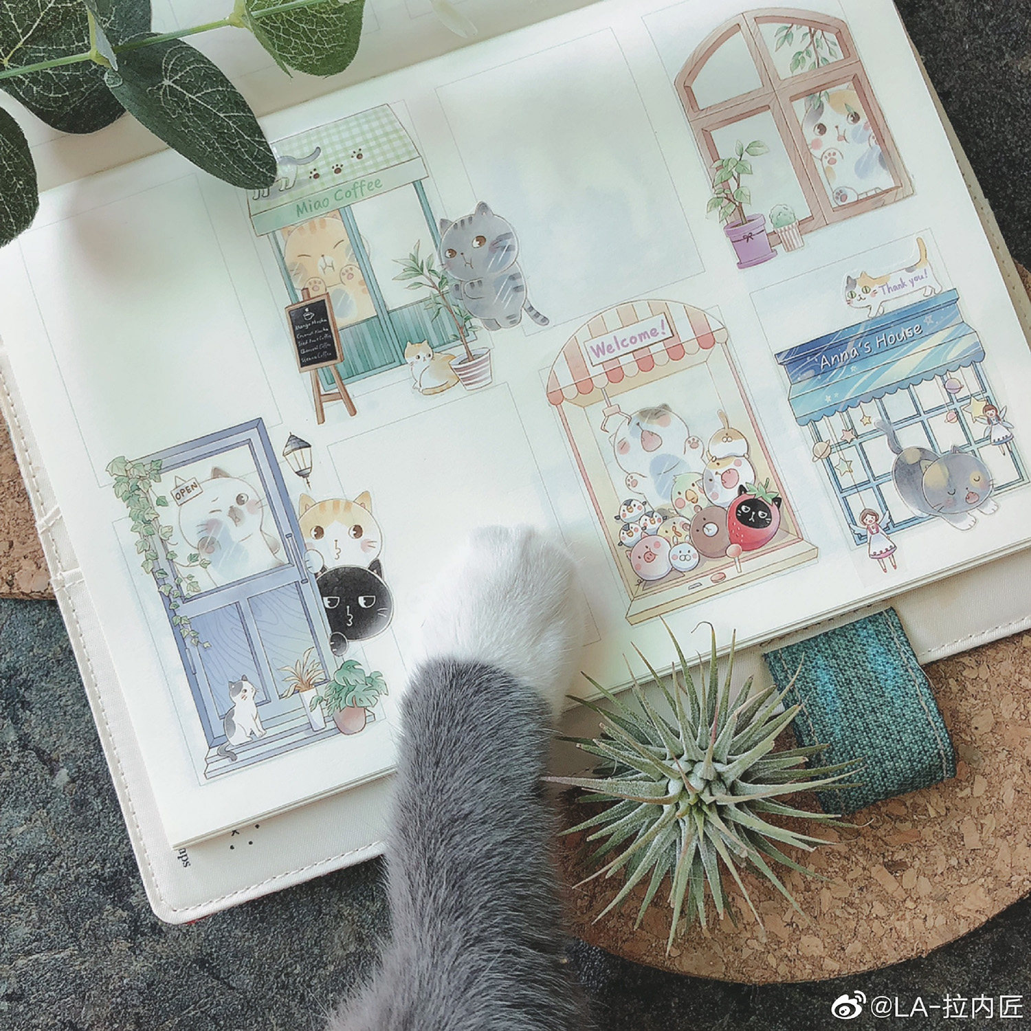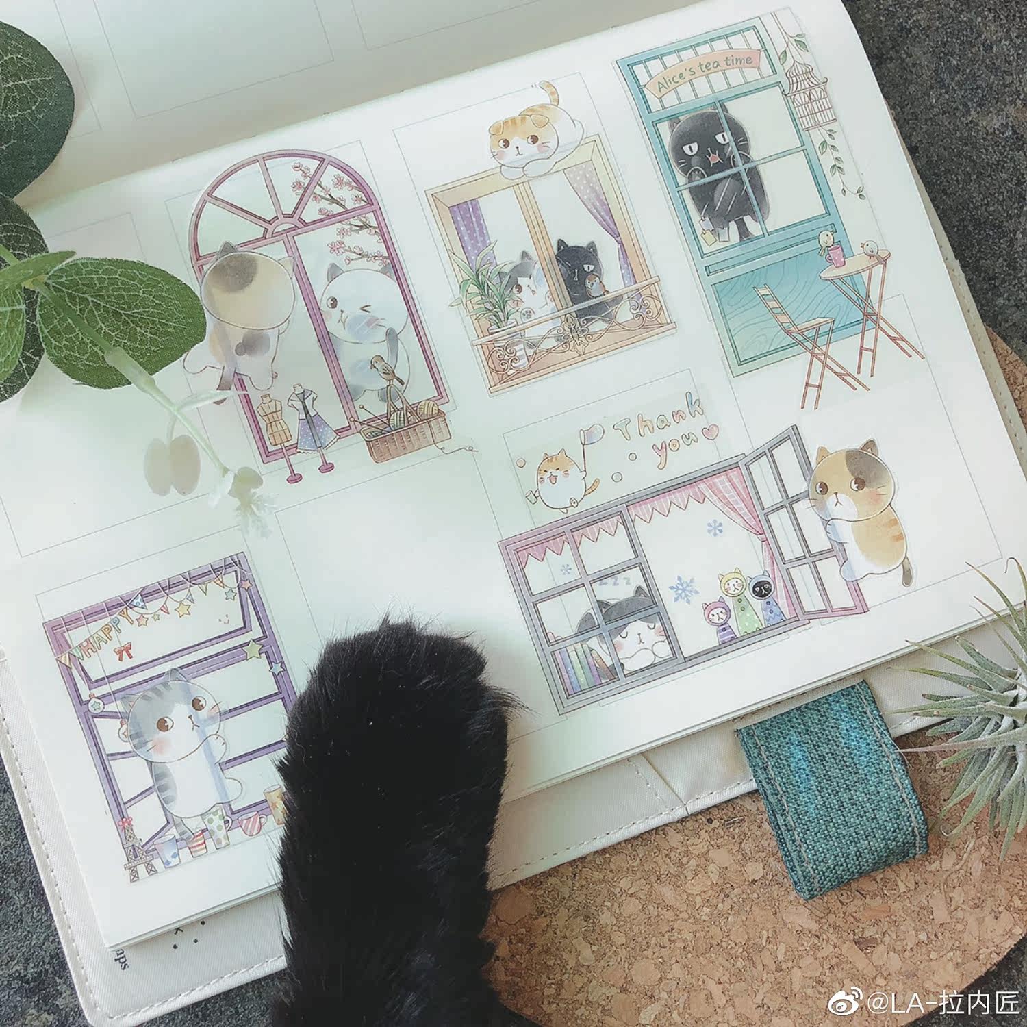 分装 拉内匠可爱猫咪pia叽喵pia叽窗自己印手账和纸pet胶带