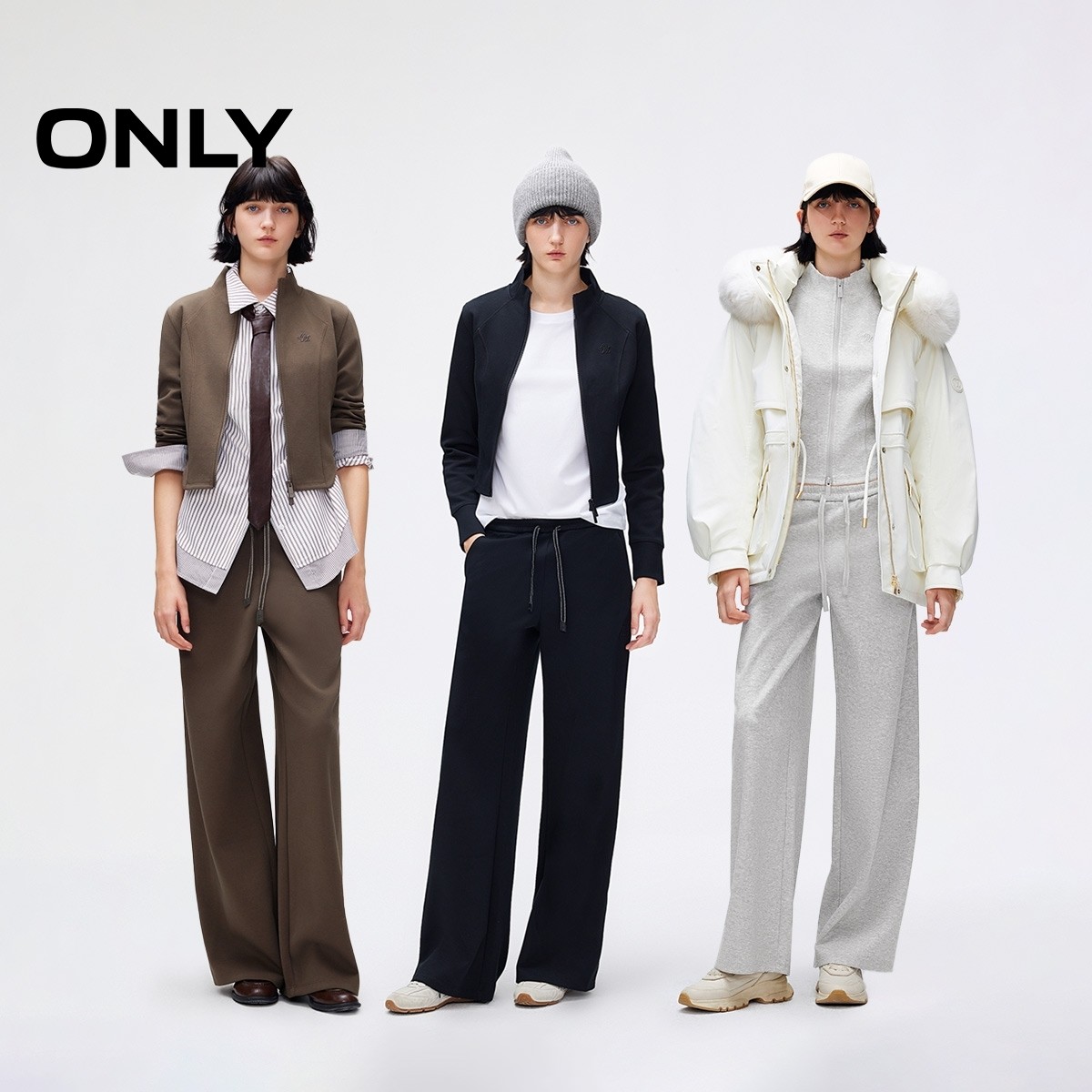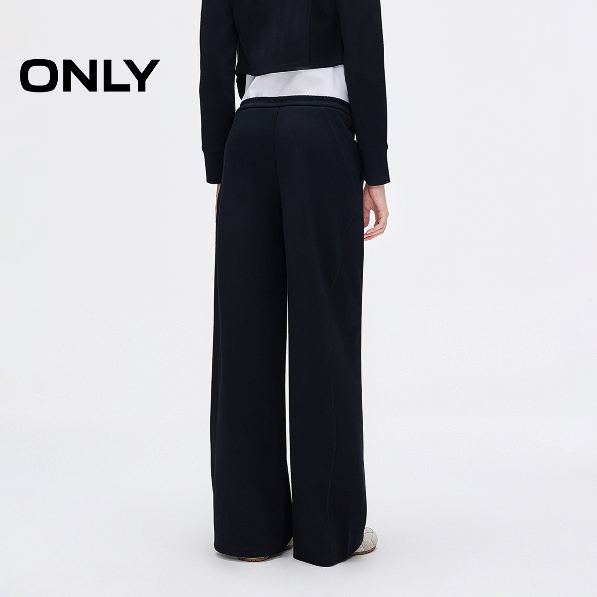 ONLY2025冬季新款舒适刺绣LOGO装饰宽松直筒纯色卫裤休闲裤女