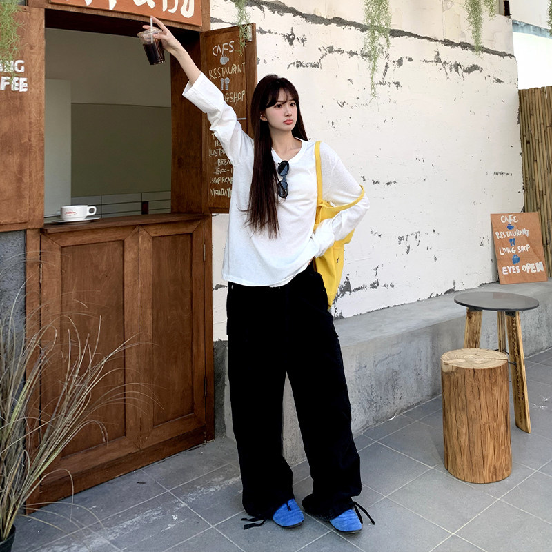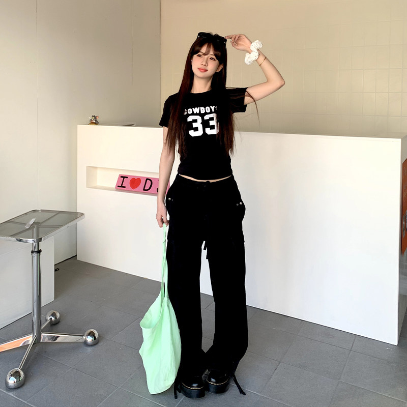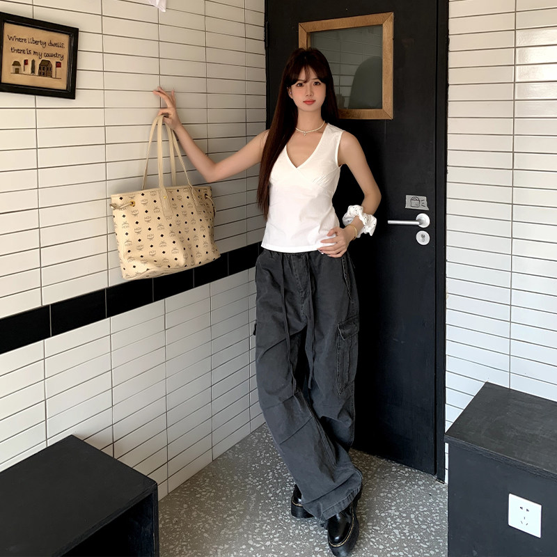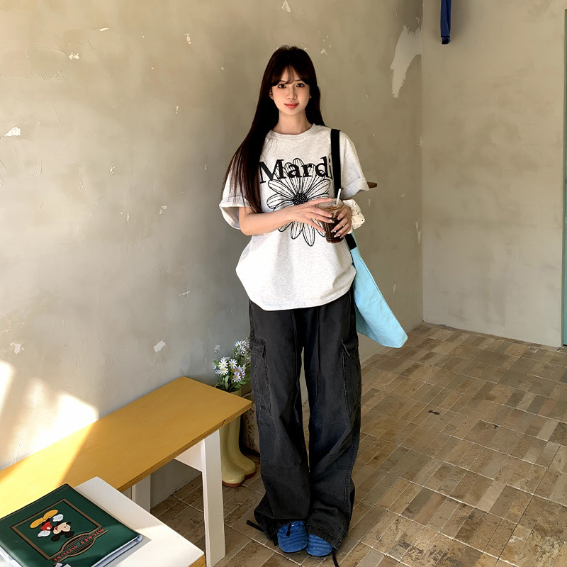 橘子树在哪儿复古灰色水洗工装牛仔裤女春季款宽松百搭多口袋裤子