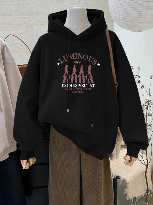 即墨春秋韩版连帽套头加绒加厚卫衣女宽松美式复古印花纯棉外套潮