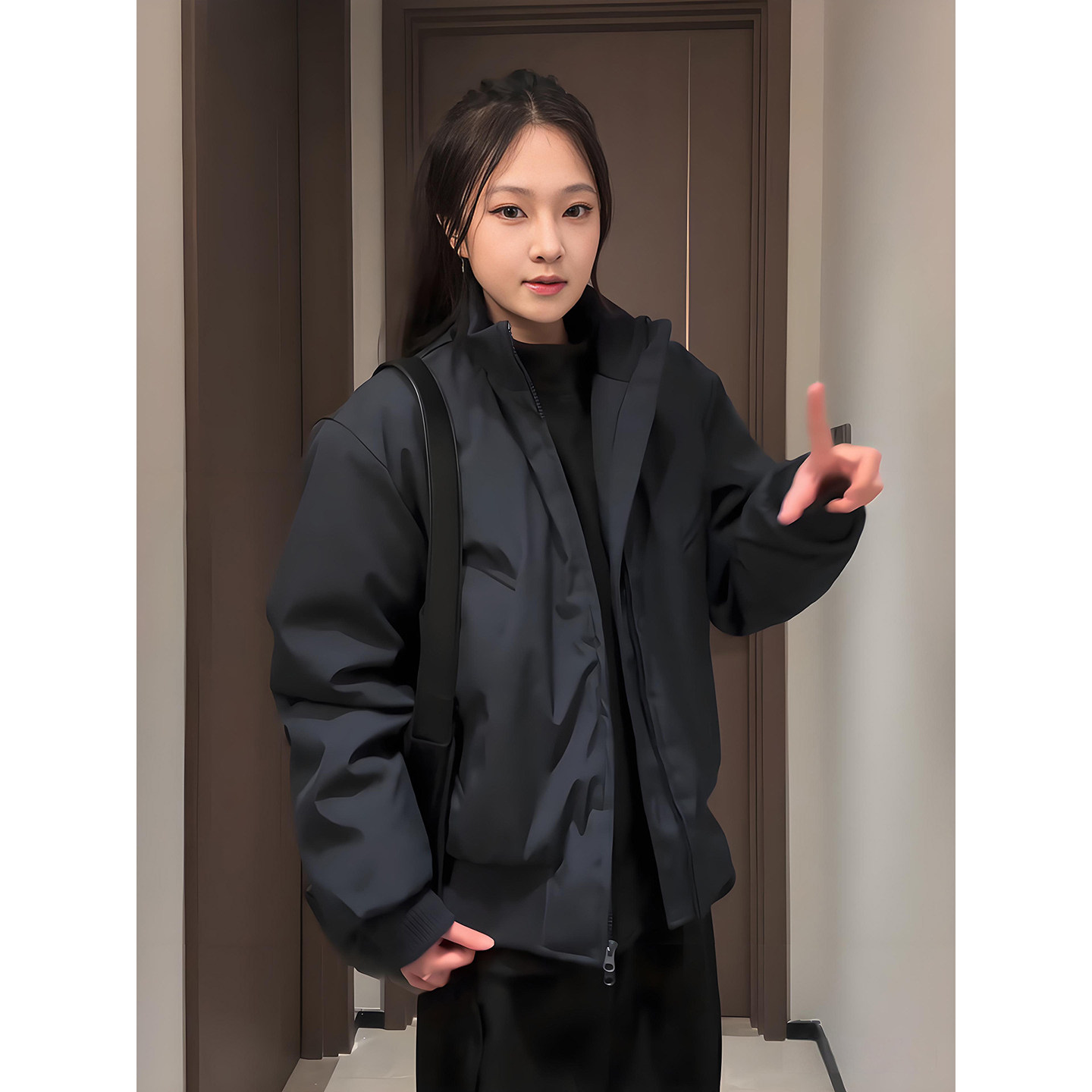 藏青色飞行夹克棉服男款秋冬美式廓形短款外套cleanfit立领棒球服