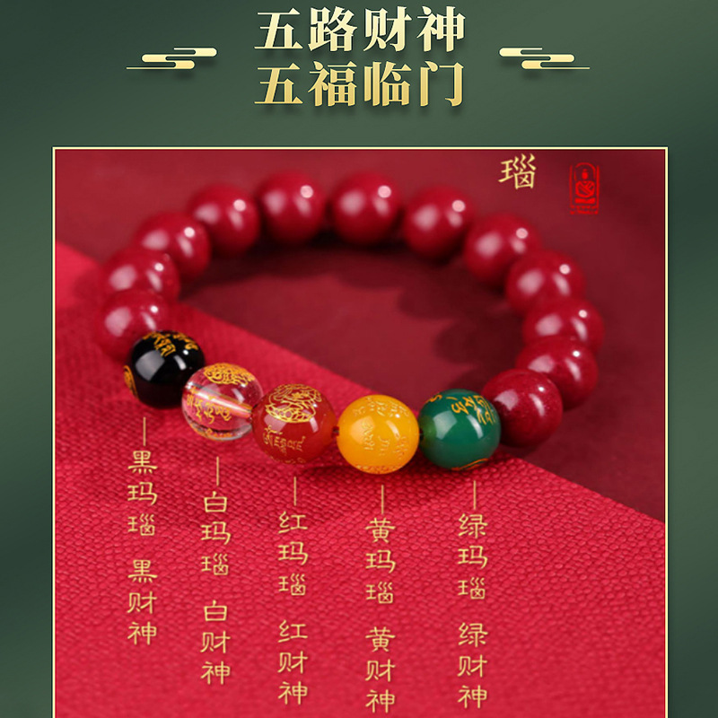 五台朱砂手串五路财神手链招财多宝转运珠男款佛珠玛瑙本命年礼物