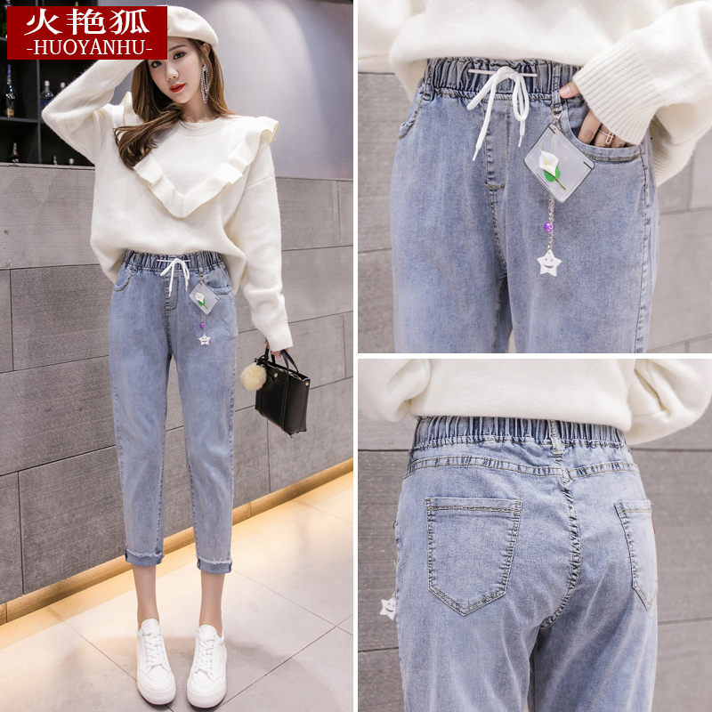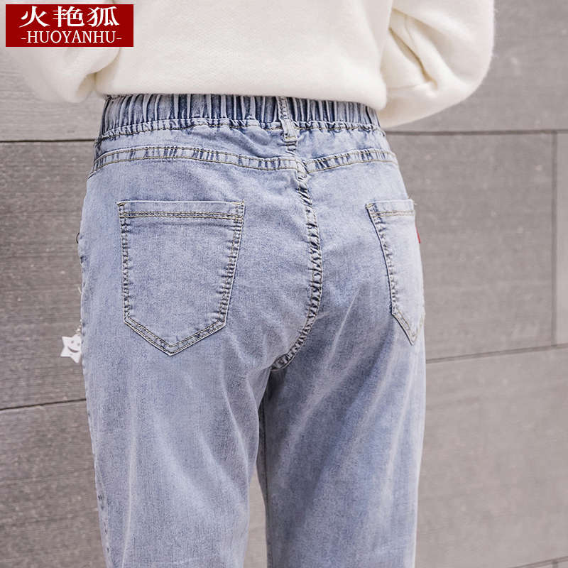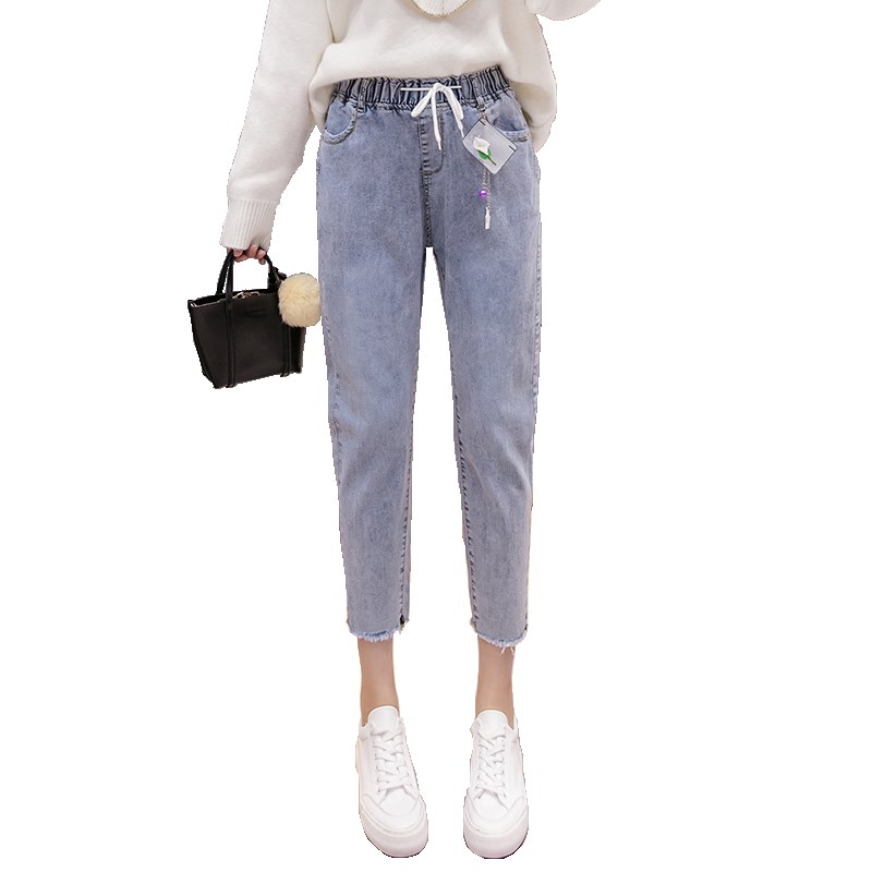 弹力哈伦牛仔裤女2022夏季薄款休闲修身显瘦九分裤网红毛边老爹裤