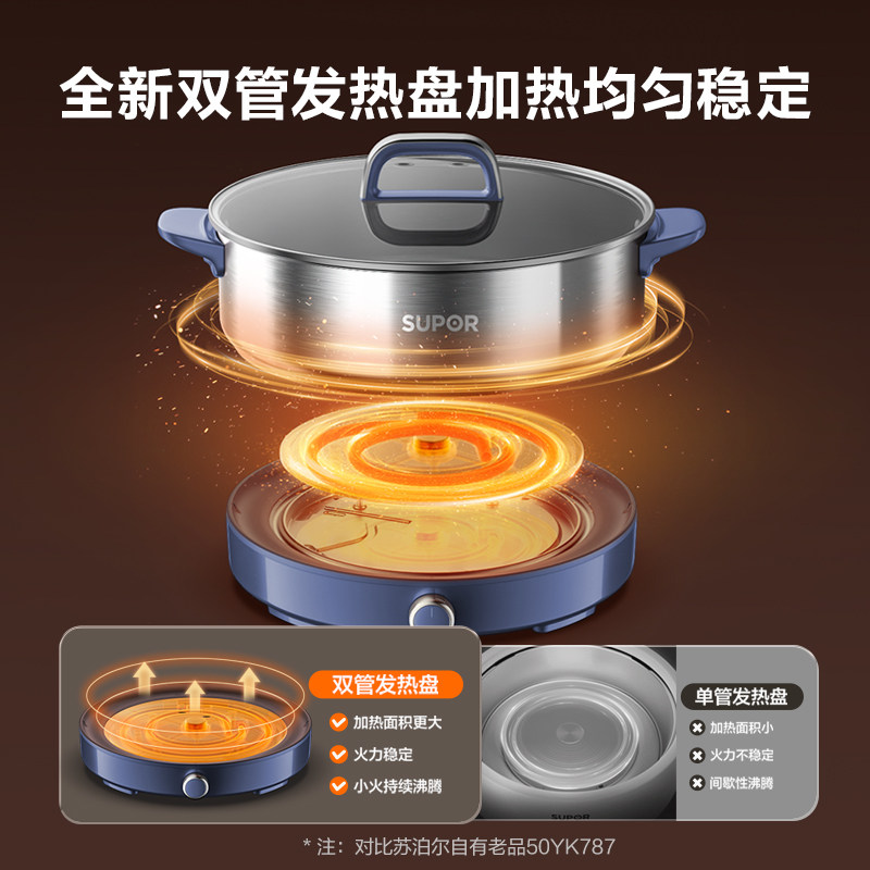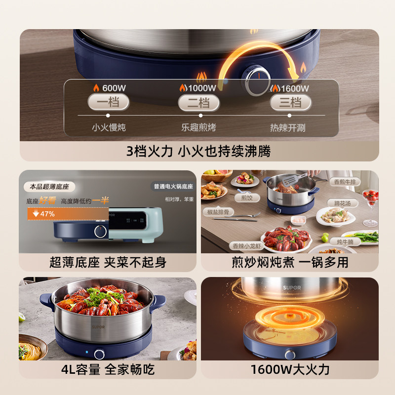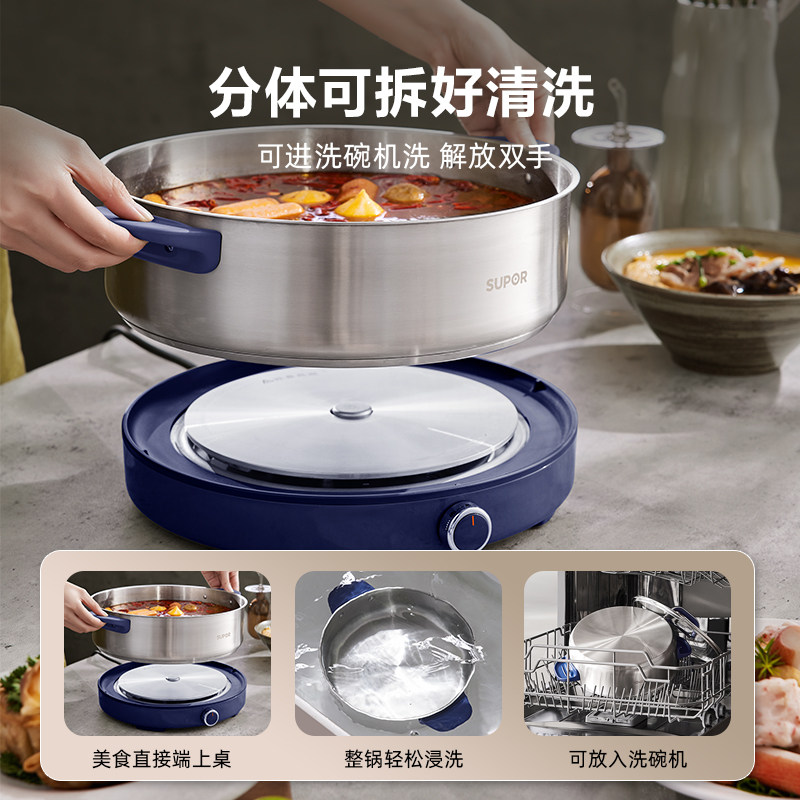 苏泊尔不锈钢电火锅0涂层家用多功能分体式电煮锅火锅电锅新款