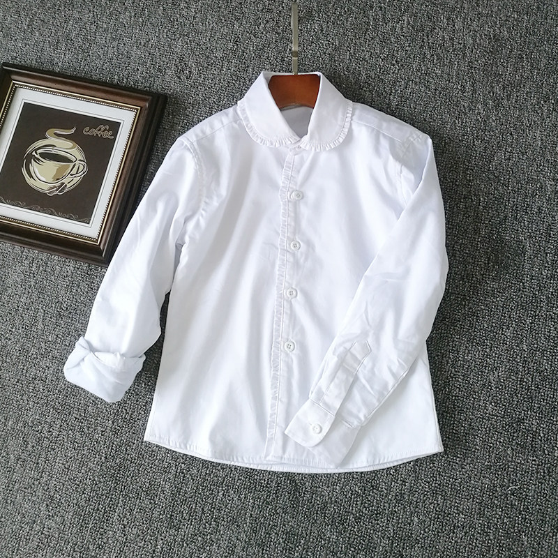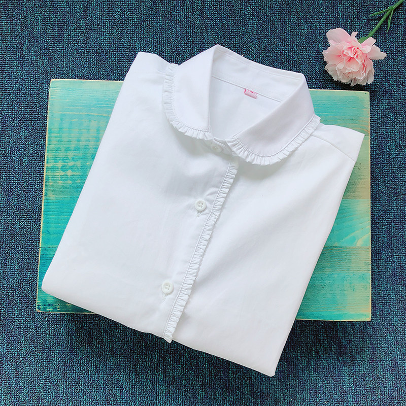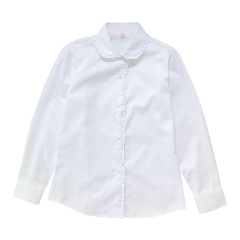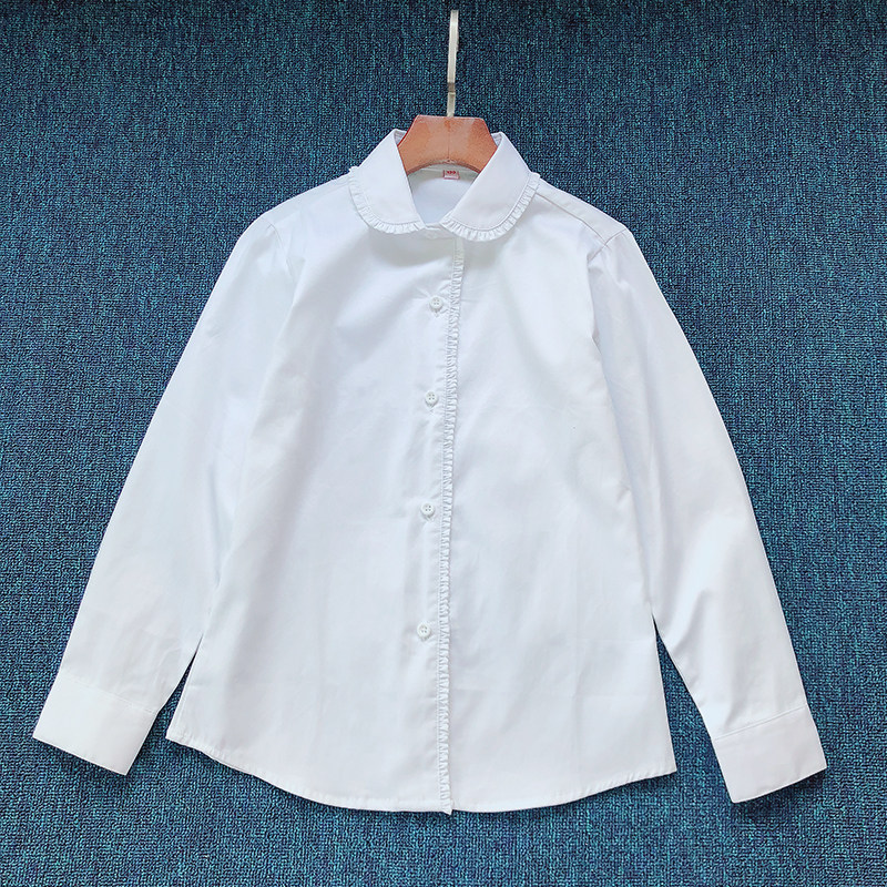 女童白衬衫长袖纯棉花边领秋冬儿童白色衬衣中大童小学生演出校服