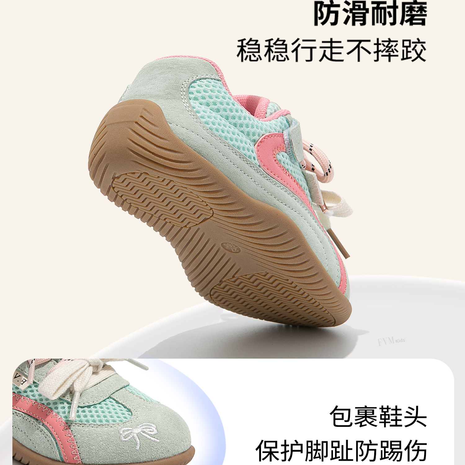 女童鞋子儿童绿色运动德训板鞋2025新款夏季薄款网鞋网面透气大童