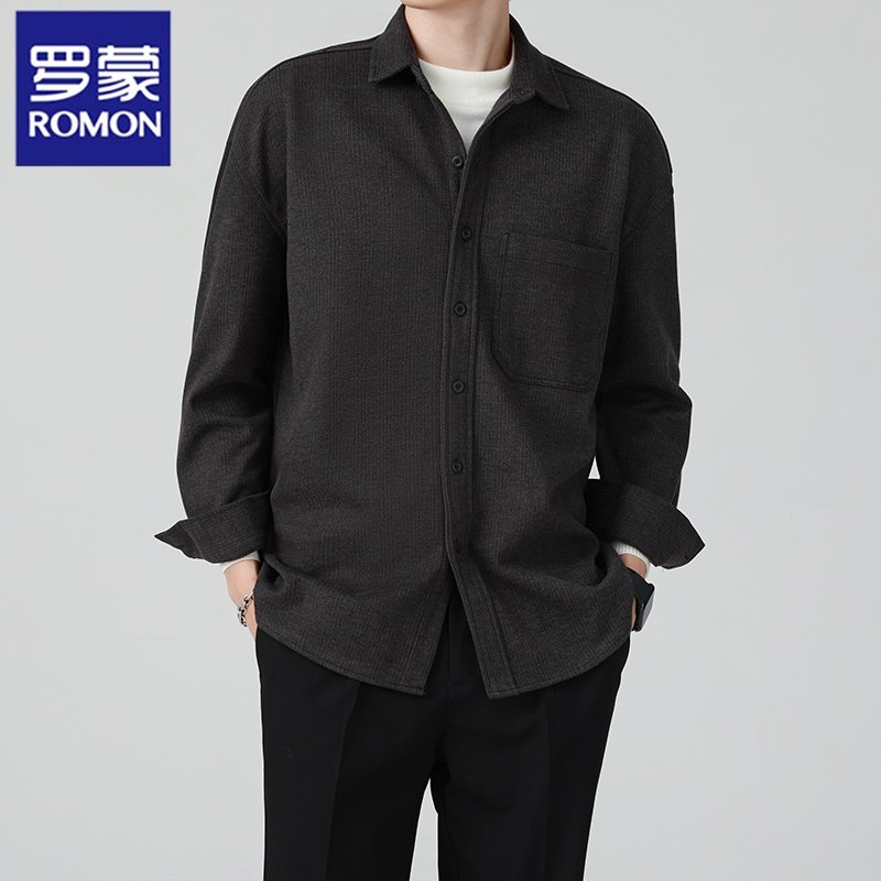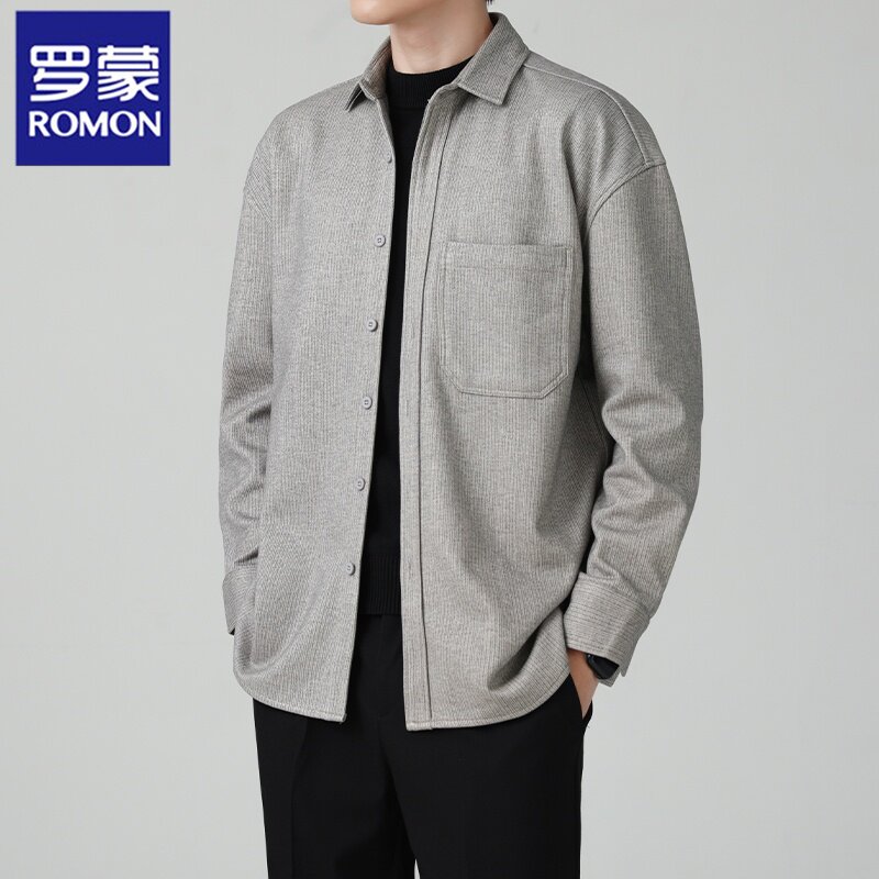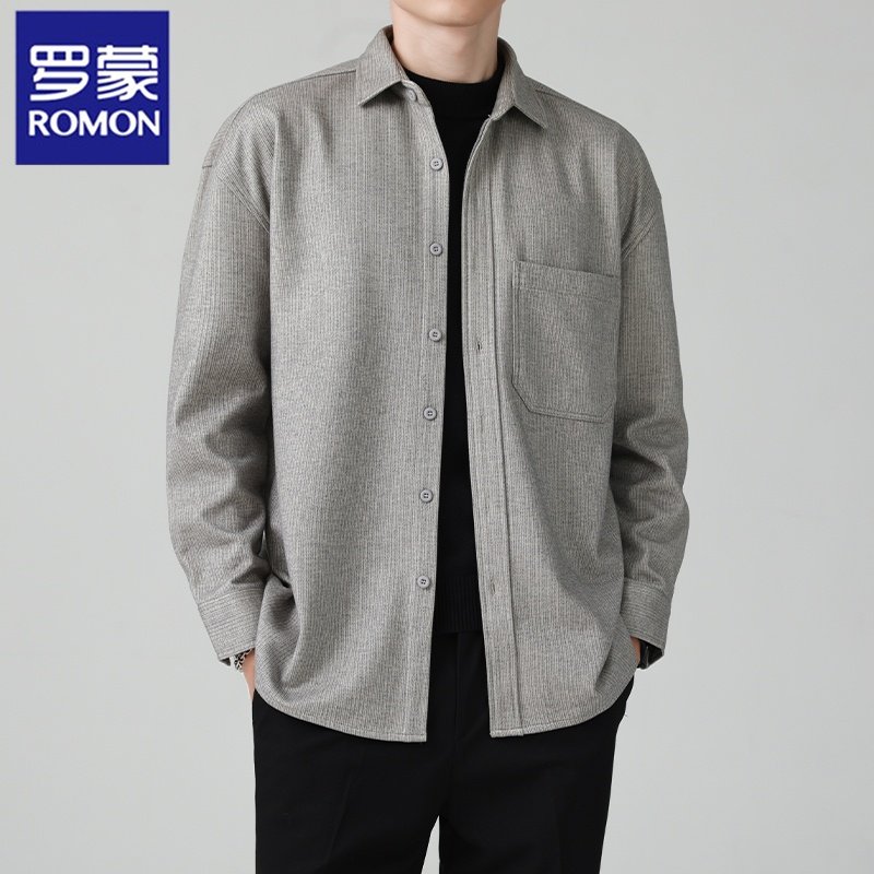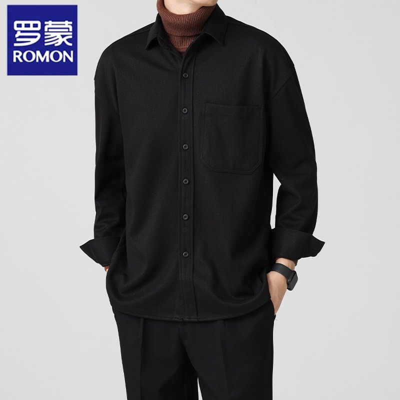 罗蒙秋冬毛呢衬衫长袖男保暖加厚高级感寸衫痞帅内搭男士休闲衬衣