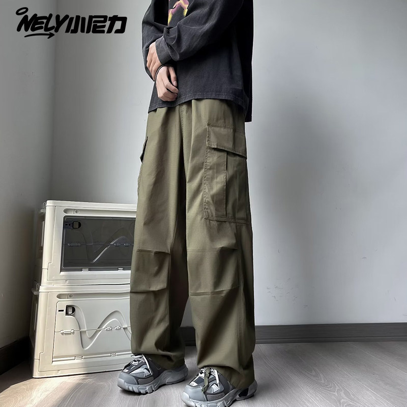 小尼力美式机能休闲直筒冲锋裤男生秋季新款长裤子高街运动工装裤